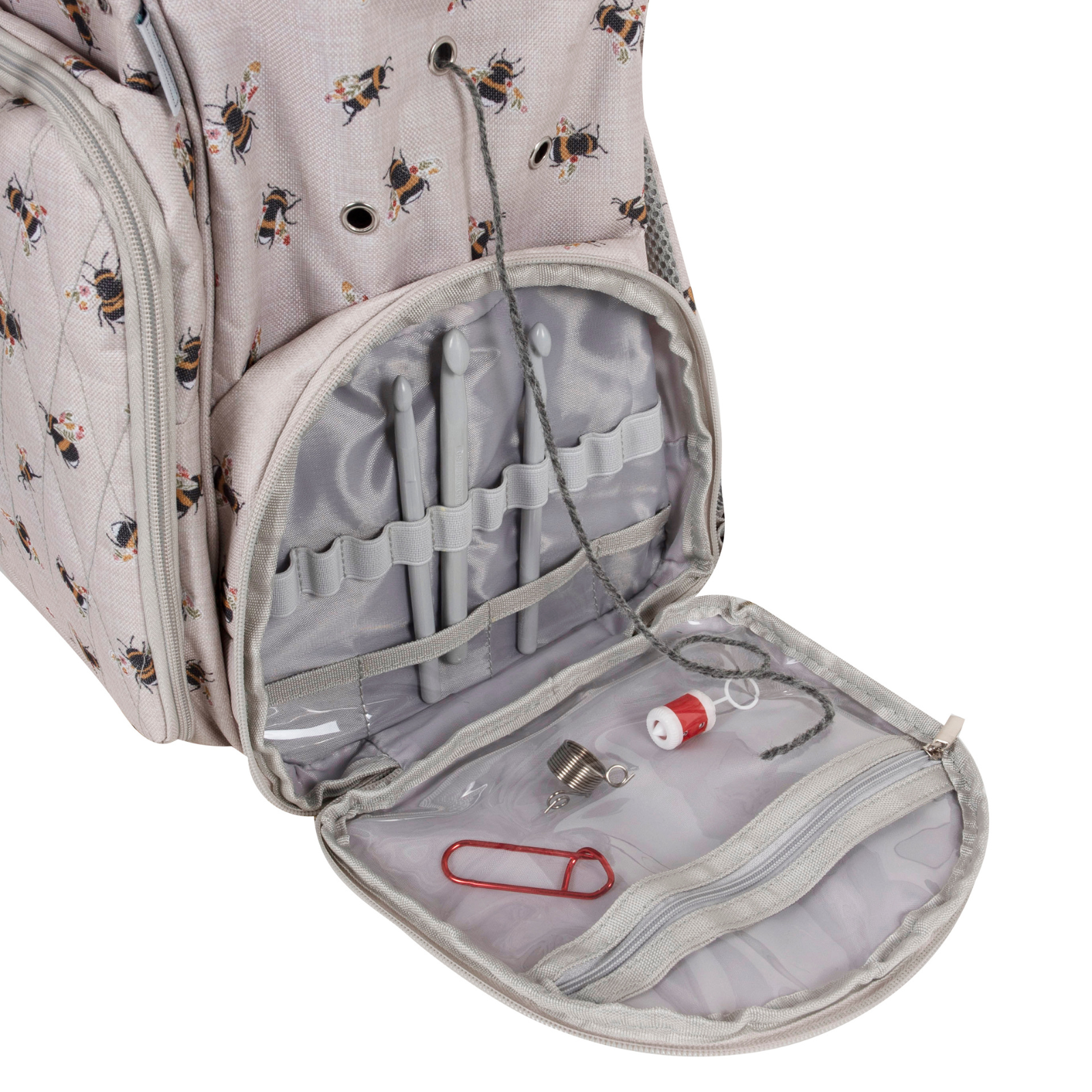 - A large zipped pocket at the front of the bag with an organiser panel to store hooks, needles, scissors and other craft tools