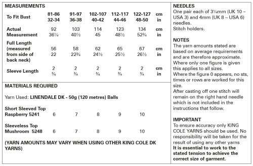 - Please see second image for suggested yarns, needle sizes and quantities required to make the garments