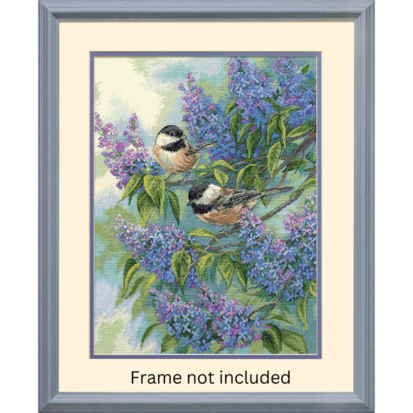 Counted Cross Stitch Kit: Chickadees and Lilacs