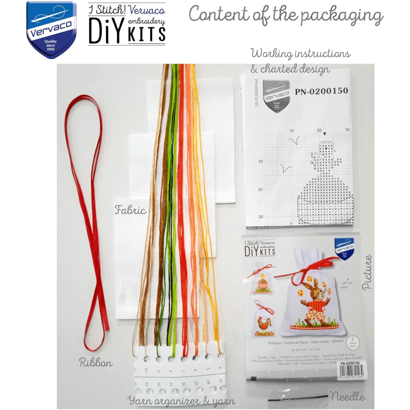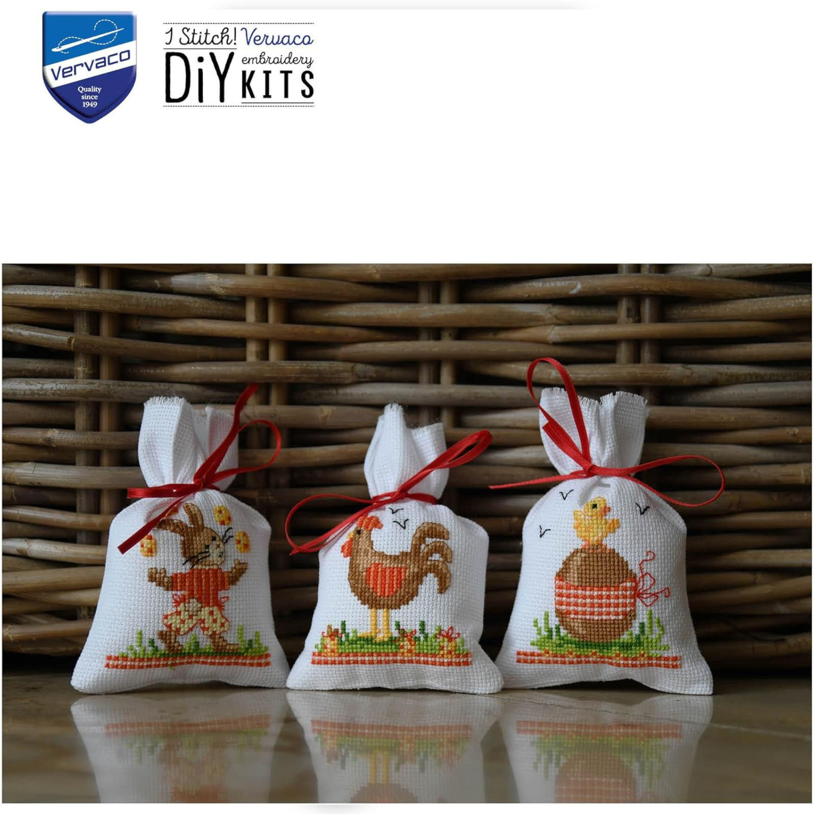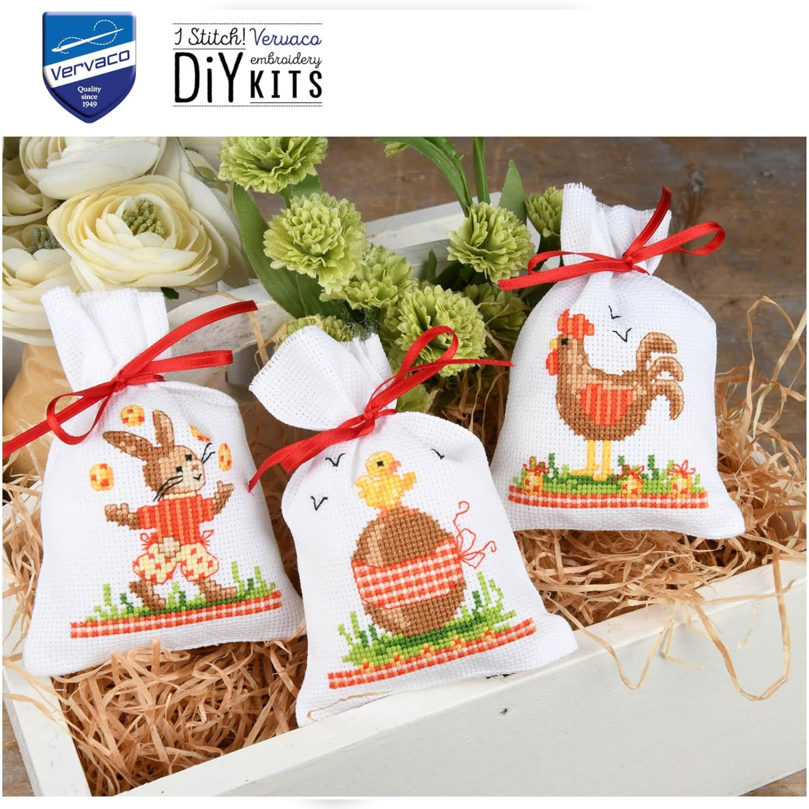 Vervaco Counted Cross Stitch Kit: Gift Bags: Easter Animals: Set of 3