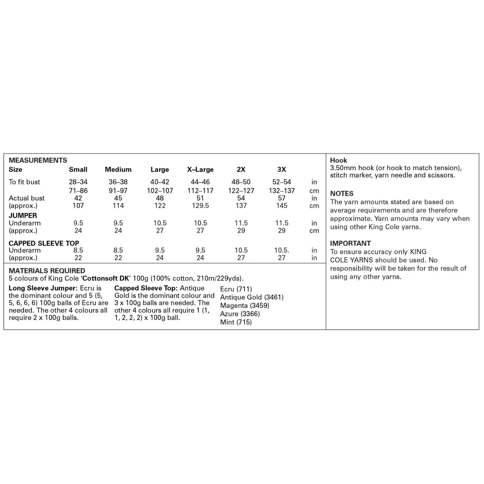 King Cole Pattern Ladies Granny Square Jumper & Capped Sleeve Top Crocheted in King Cole Cottonsoft DK 5944
