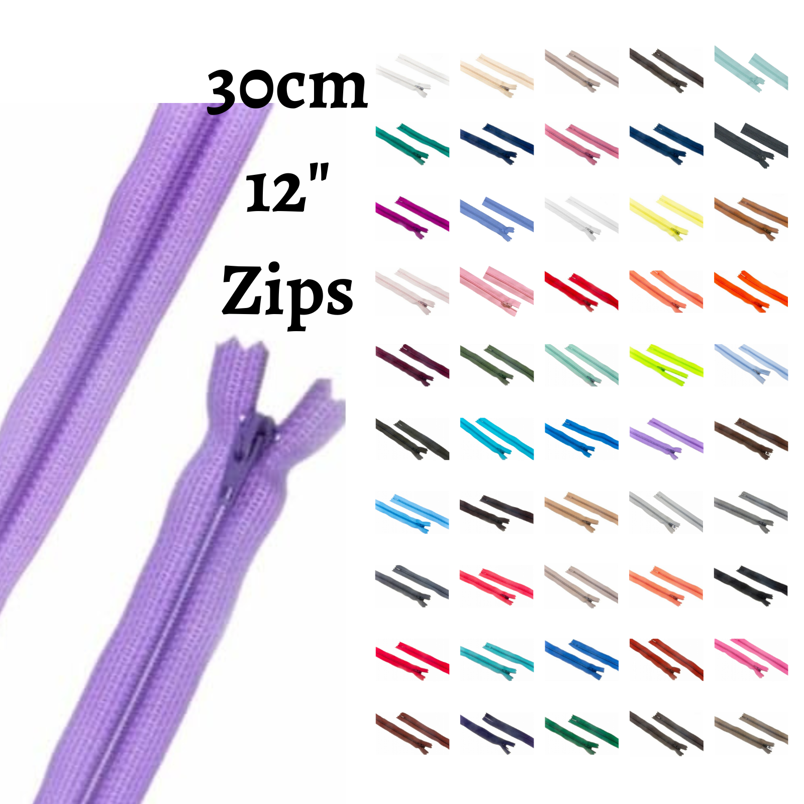 - High-quality, nylon, closed-end zips with plastic teeth and a metal zip slider