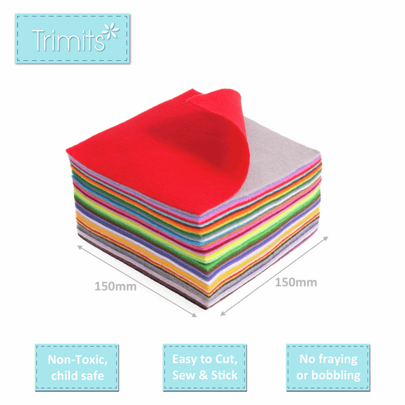 Trimits Multi Coloured Crafting Felt 42 Pieces - 150 x 150mm