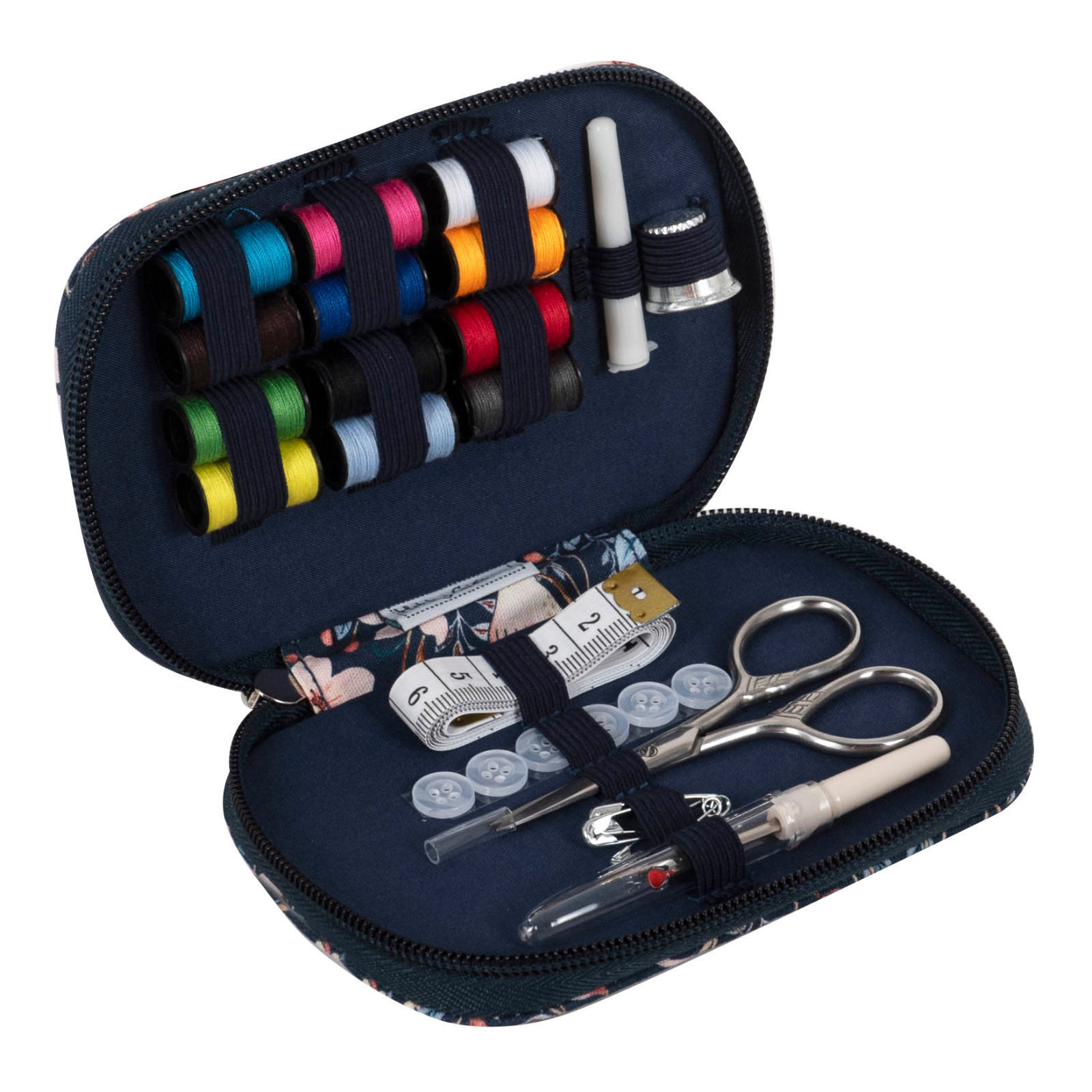 - Sewing kit in zippered case made from cotton fabric in a classic, arts and crafts inspired bird print