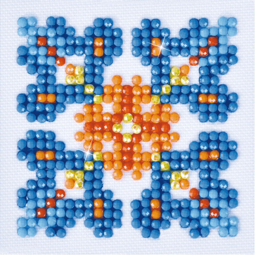 - Kit contains: high quality colour printed fabric, Diamond Dotz pre-sorted by shade, Diamond Dotz craft tray, stylus with