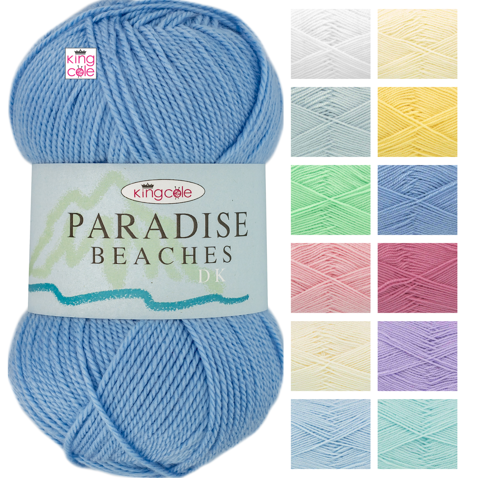 - King Cole's super soft Paradise Beaches DK range is available in a range of lovely pastel colours, perfect for the summer!