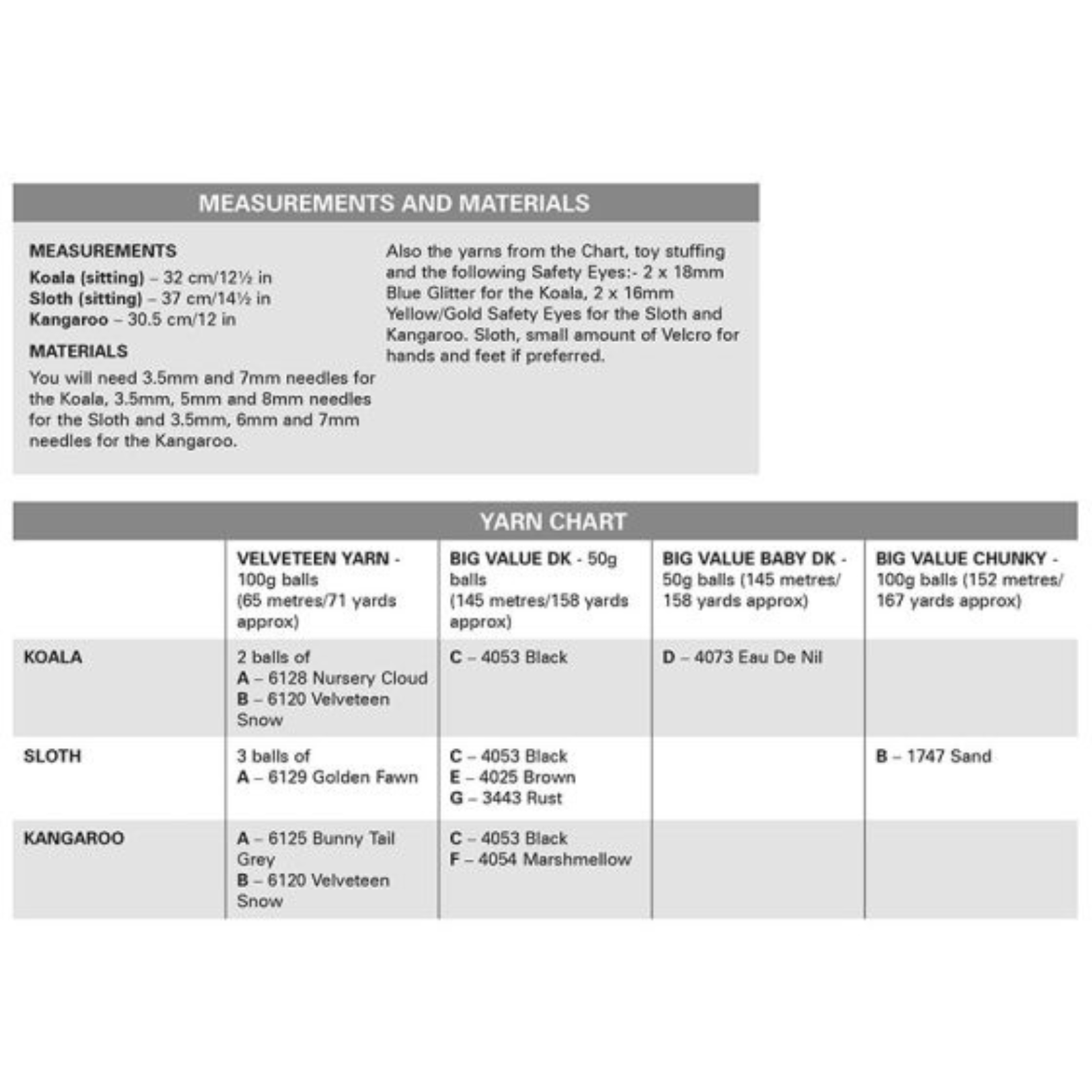 King Cole Pattern Australian & South American Toy Animals Knitted in Velveteen 9211
