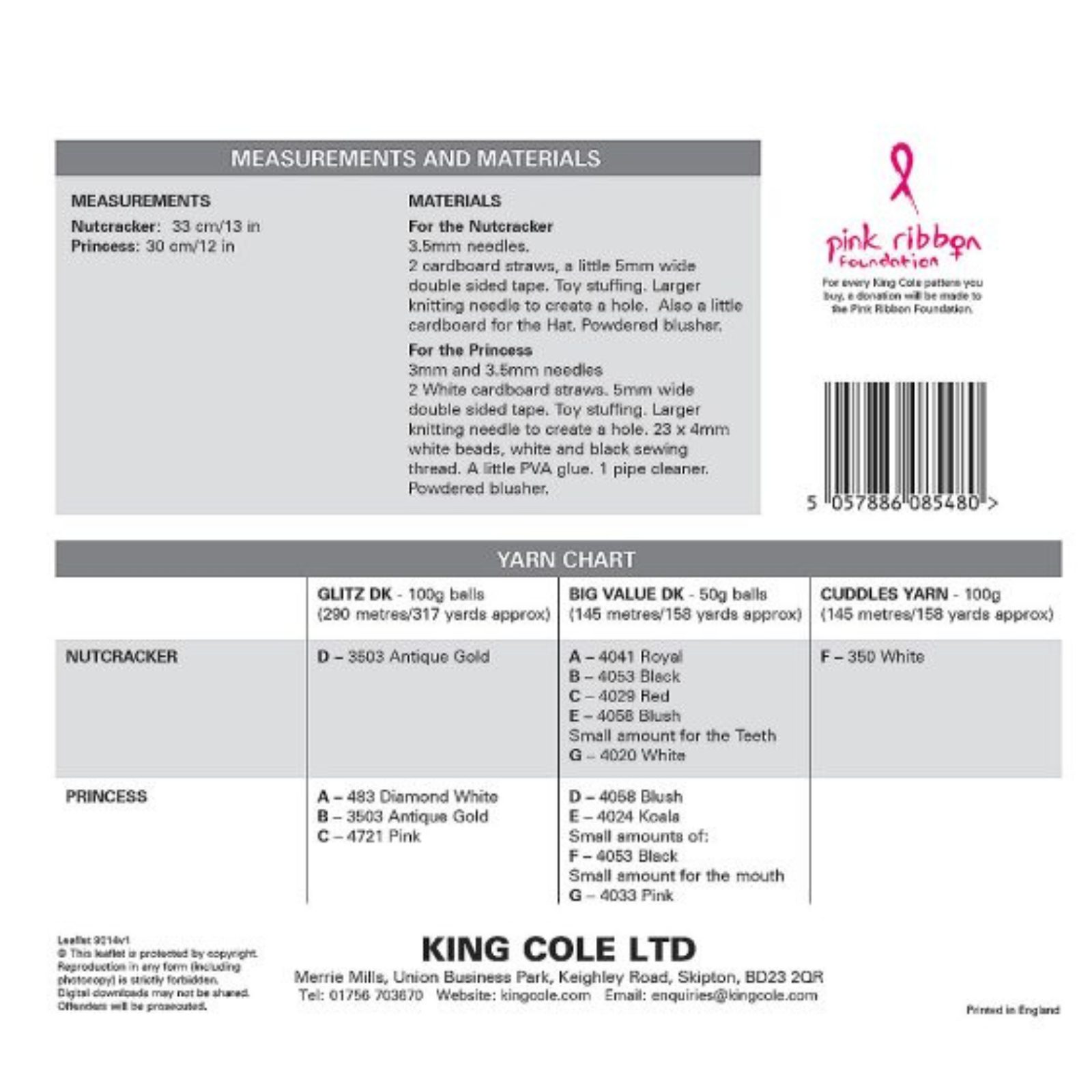 King Cole Pattern The Nutcracker and The Princess knitted in Glitz DK, Big Value DK 50g and Cuddles Chunky 9214