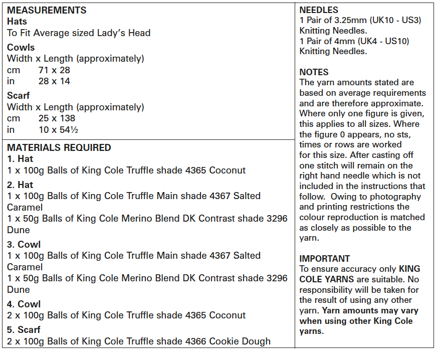 - Gifting the recipient everything he/she needs to make at least one item from the included Hat & Scarf pattern.