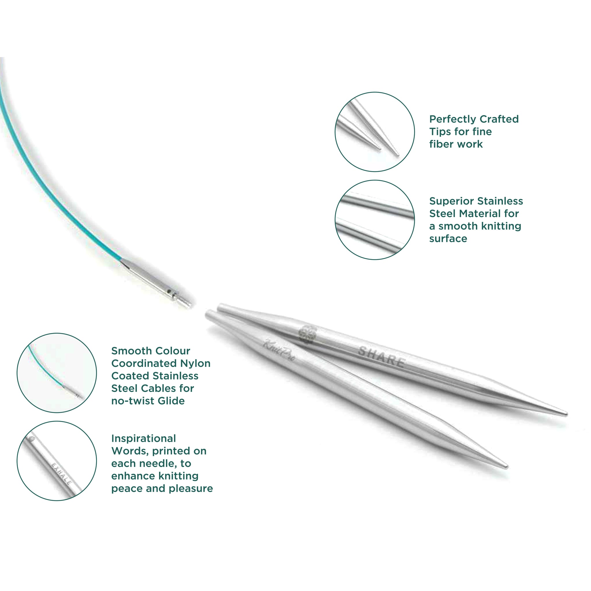 - Interchangeable circular knitting pin made from stainless steel which is durable, environmental friendly and recyclable