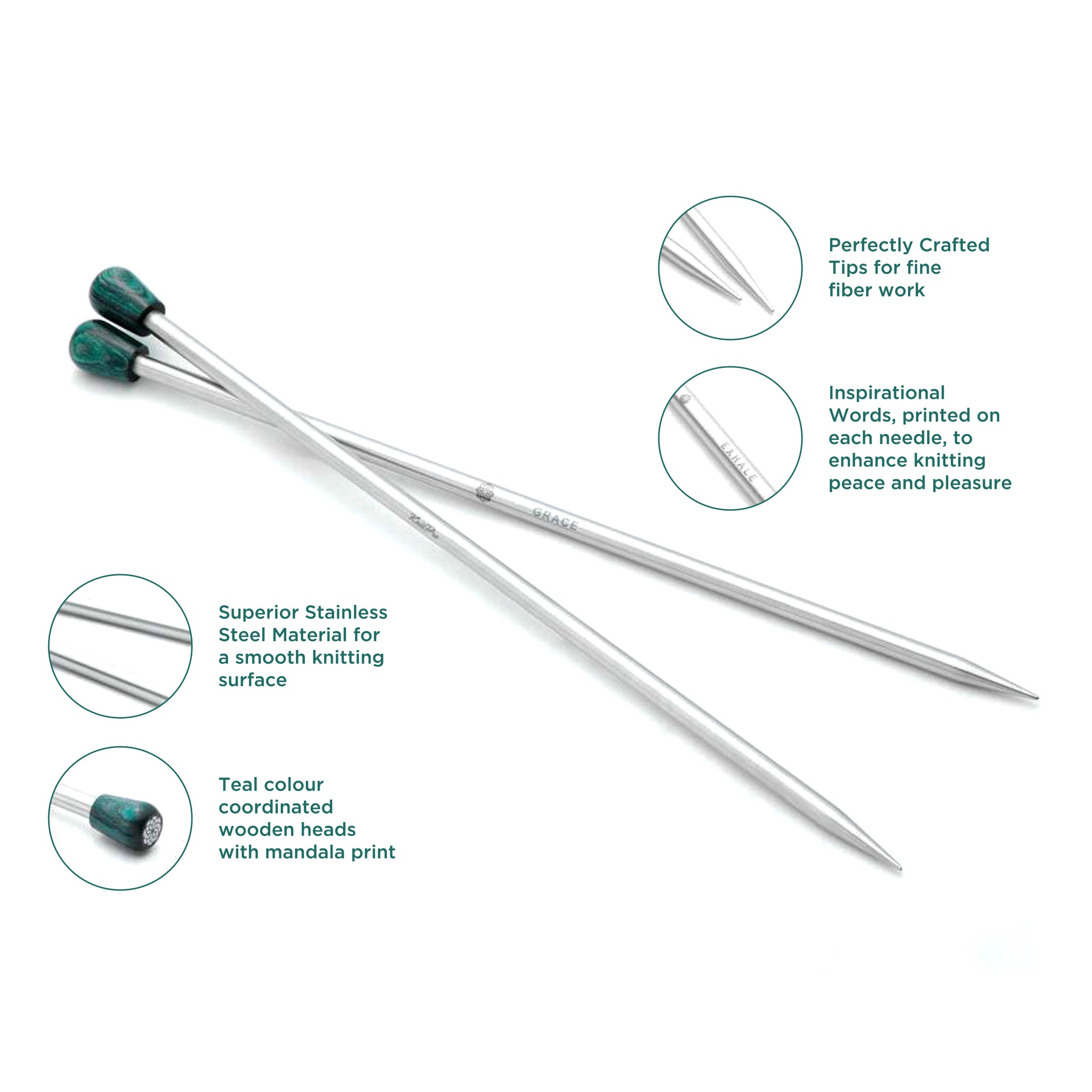 - Inspirational word printed on each needle, to enhance knitting peace and pleasure
