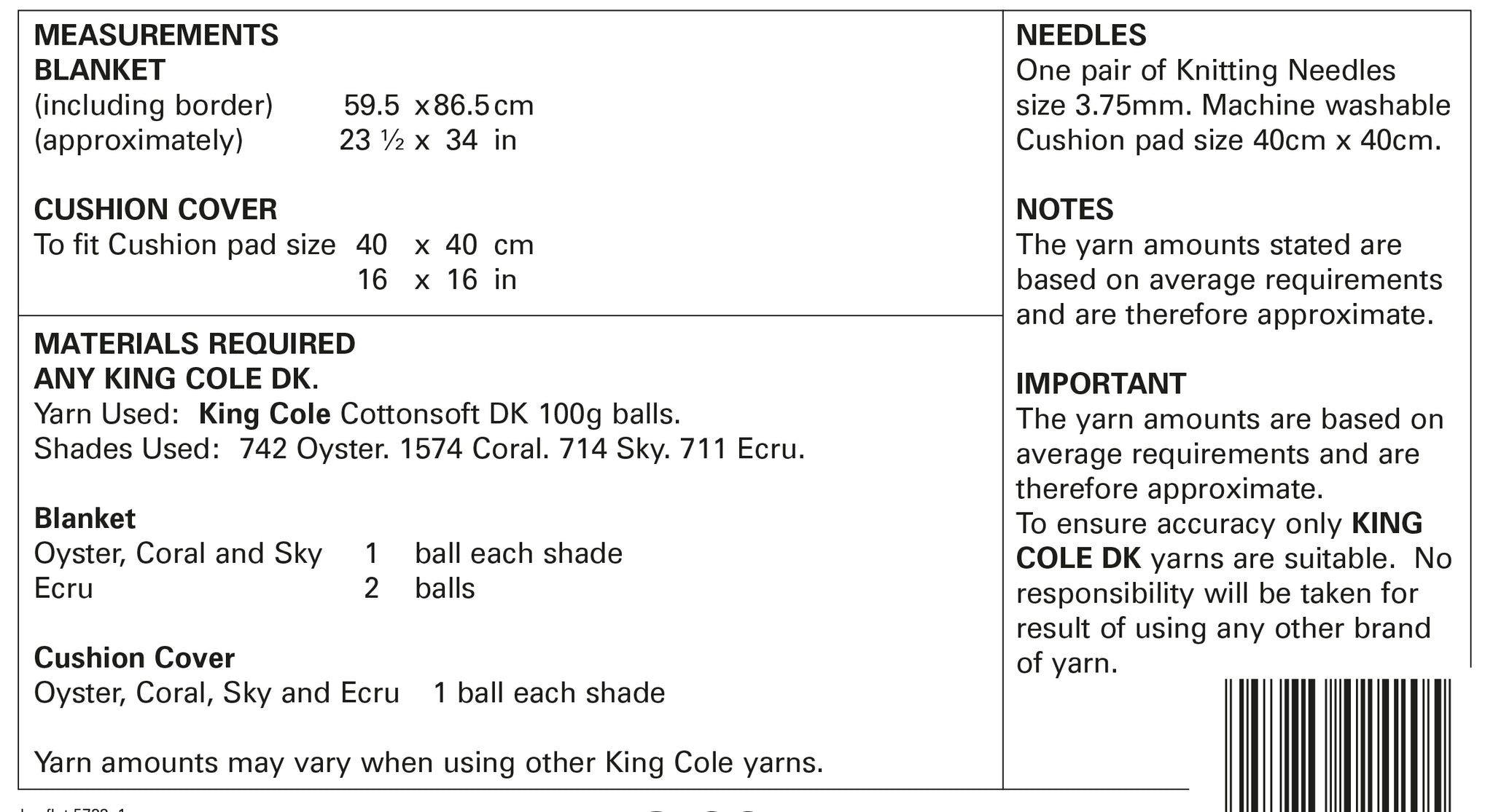 King Cole Knitting Pattern Alphabet Blanket & Cushion Cover Knitted in Cottonsoft DK - 5733