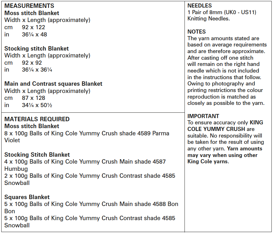 King Cole Knitting Pattern Cosy Blankets - Yummy Crush 5604
