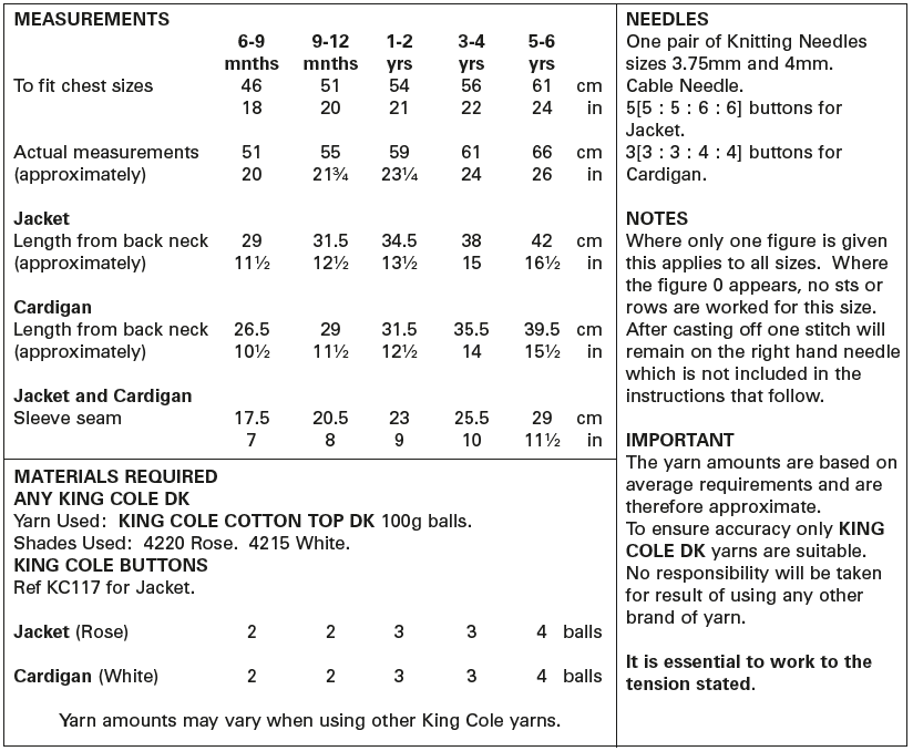- Knitting Pattern Jacket & Cardigan Knitted in Cotton Top DK