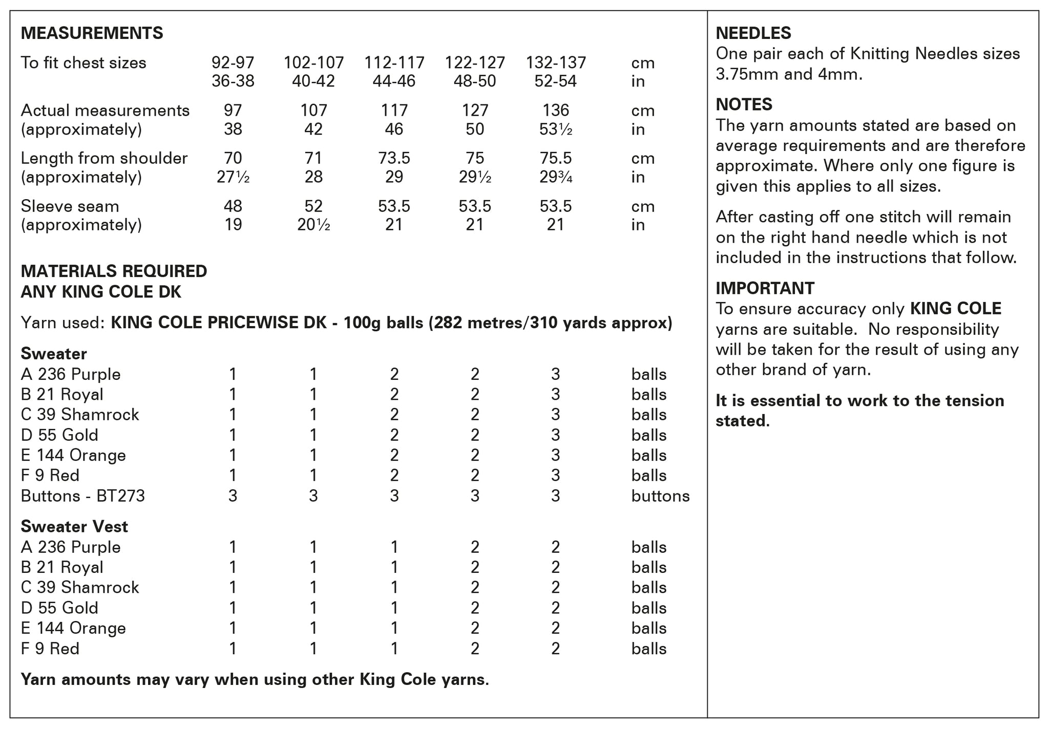 King Cole Knitting Pattern Sweater & Vest - Knitted in Pricewise DK 6121