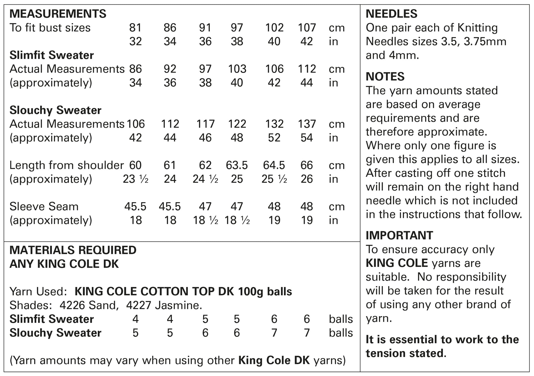 King Cole Knitting PatternSlimfit & Slouchy Sweaters: Knitted in Cotton Top DK - 5716