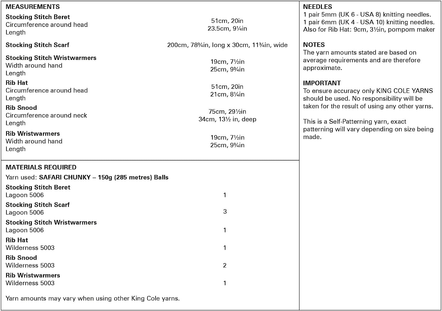 - Pattern Knitting Accessories: Knitted in King Cole Safari Chunky