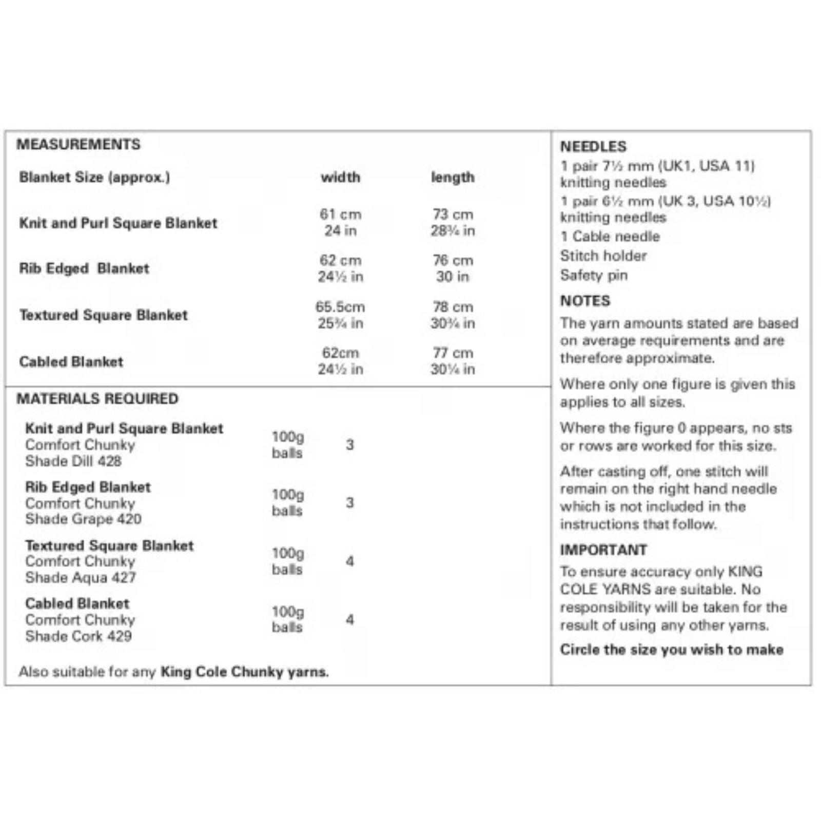 King Cole Pattern Babies Blankets Knitted in Comfort Chunky 3393