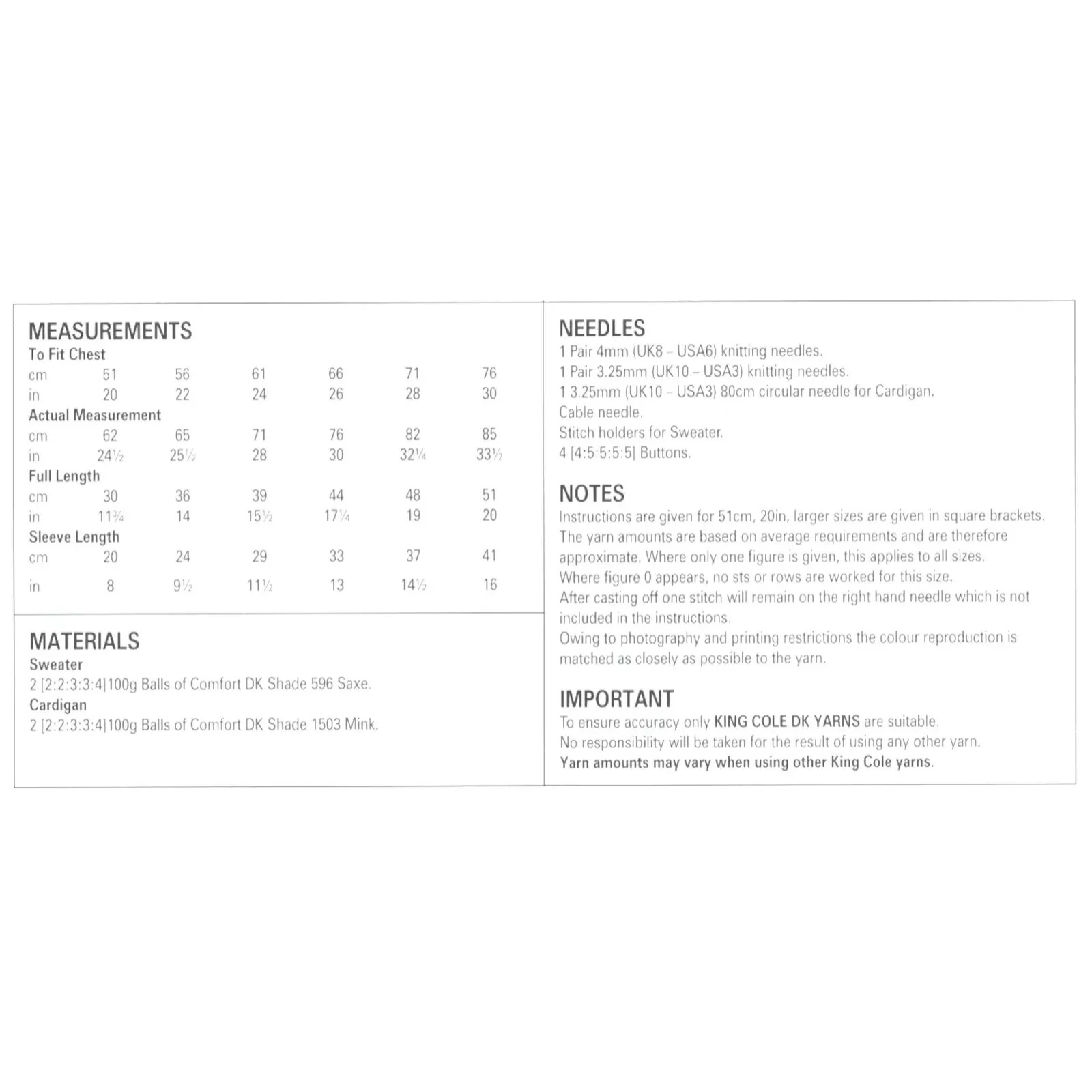 King Cole Pattern Boys Sweater and Cardigan Knitted with Comfort DK 4149