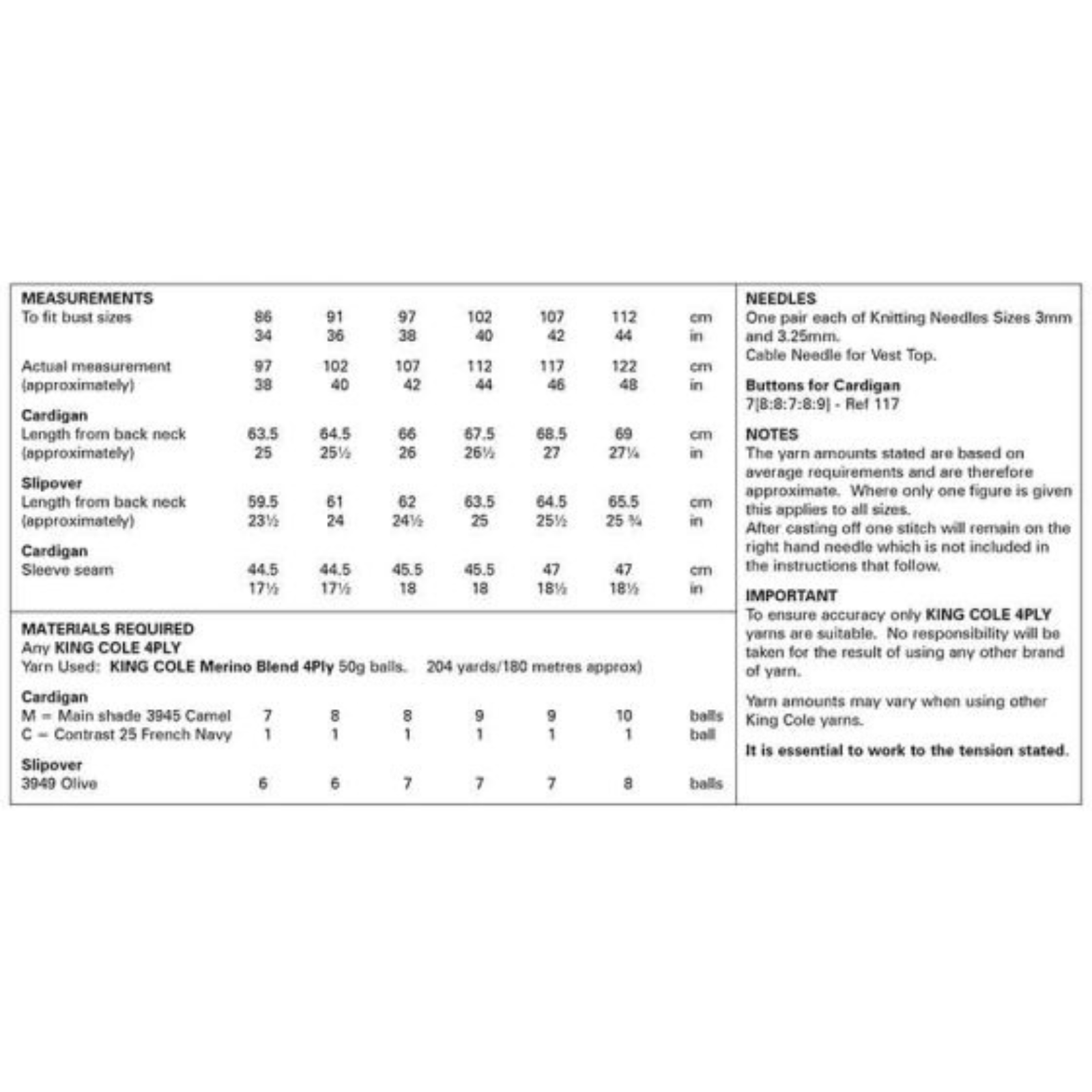 King Cole Pattern Cardigan and Slipover knitted in Merino Blend 4Ply 6294