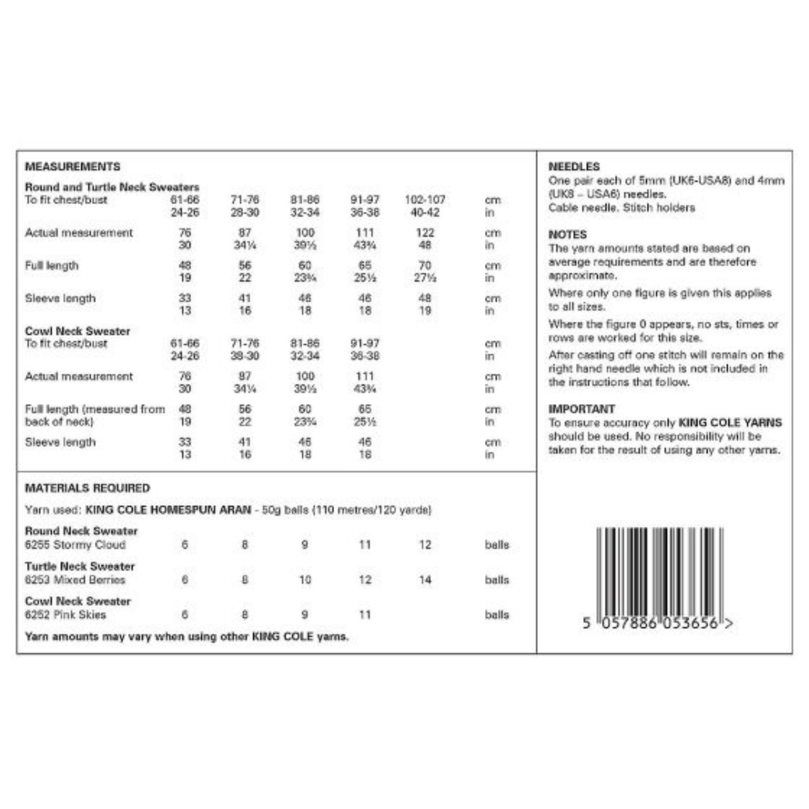 King Cole Pattern Family Sweaters knitted in Homespun Prism Aran 6304
