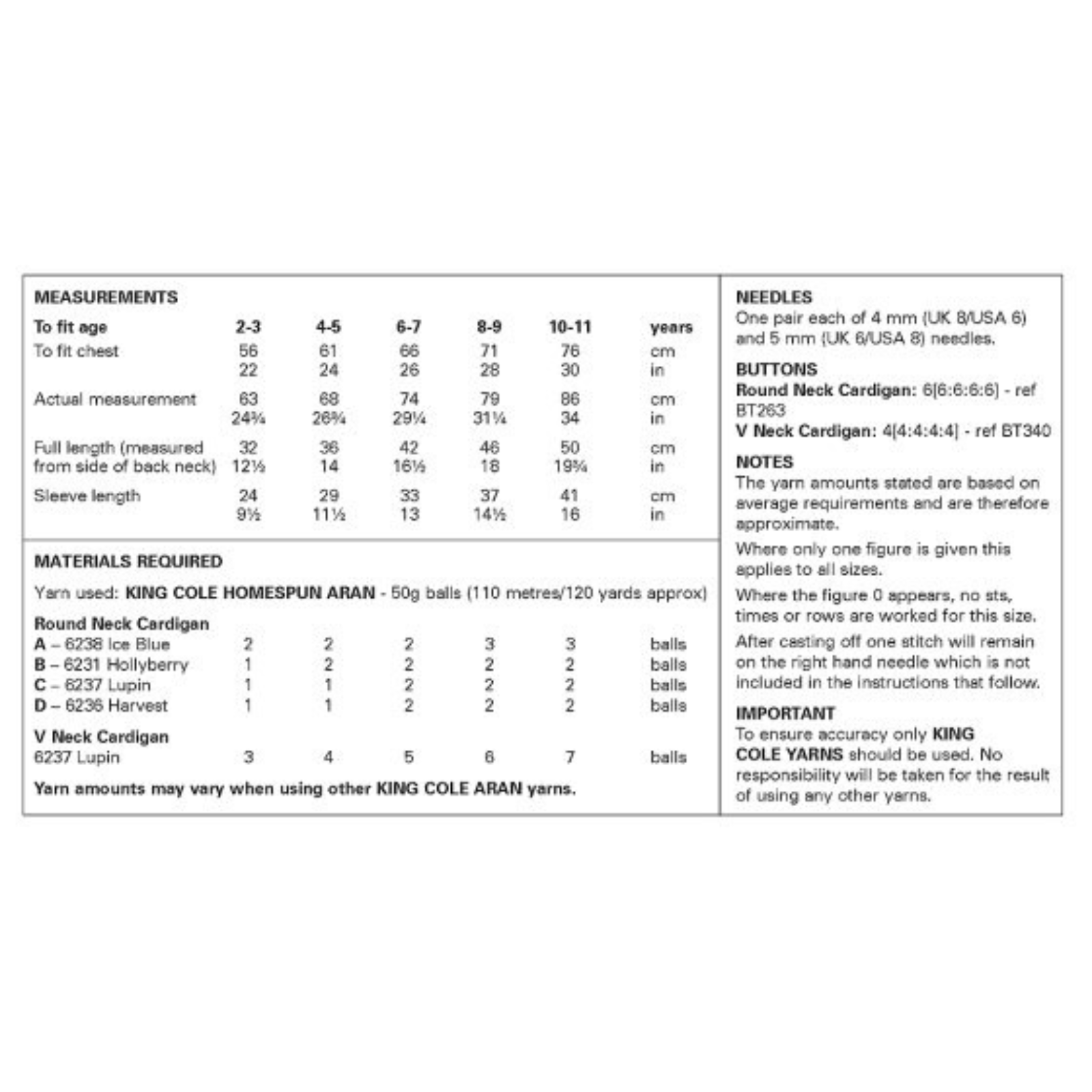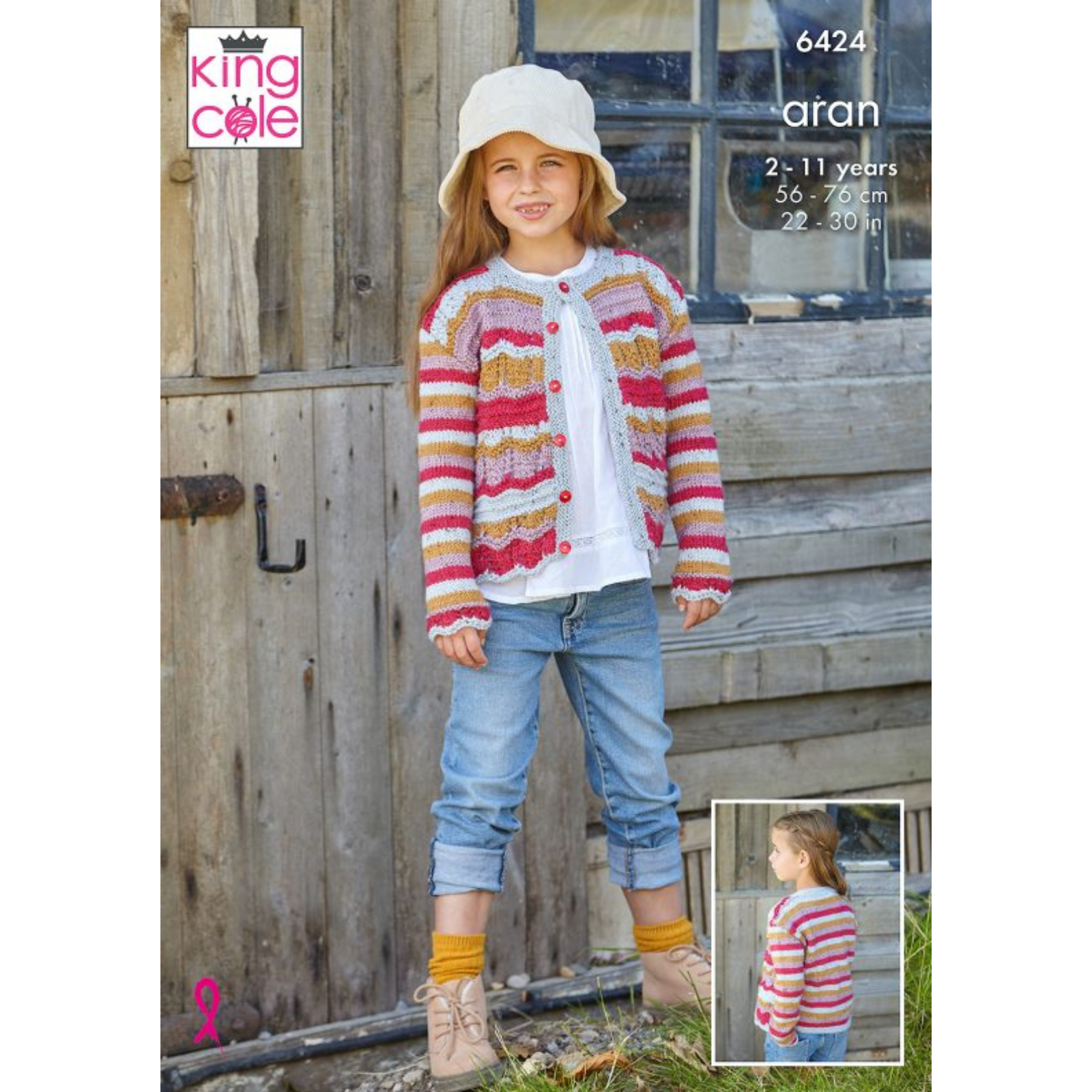 King Cole Pattern Girls Cardigans knitted in Homespun Aran 6424