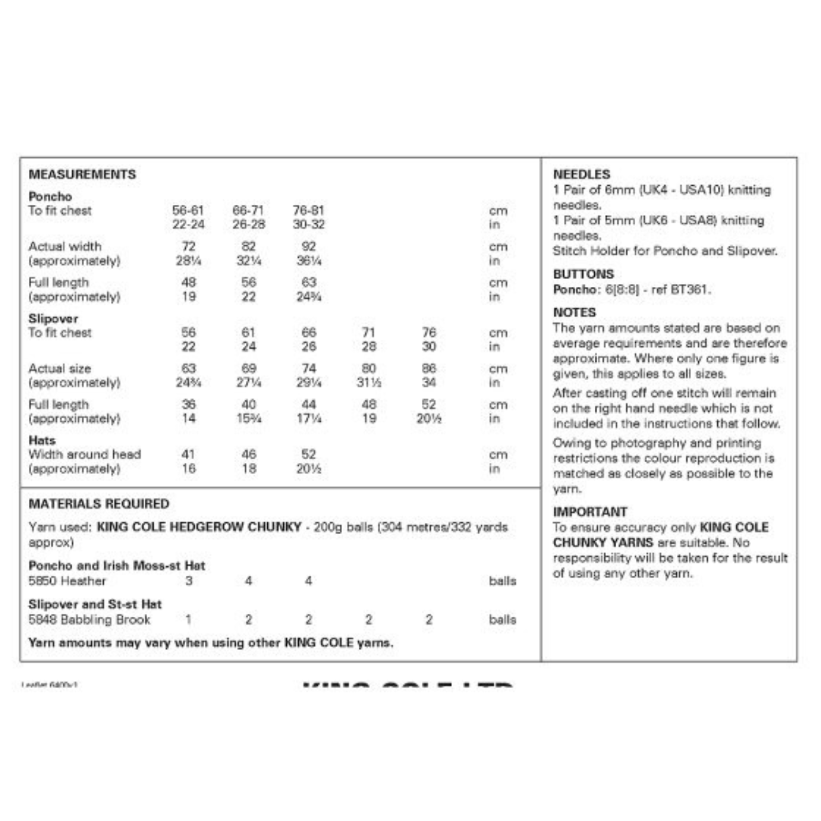 King Cole Pattern Girls Poncho, Slipover and Hat knitted in Hedgerow Chunky 6400