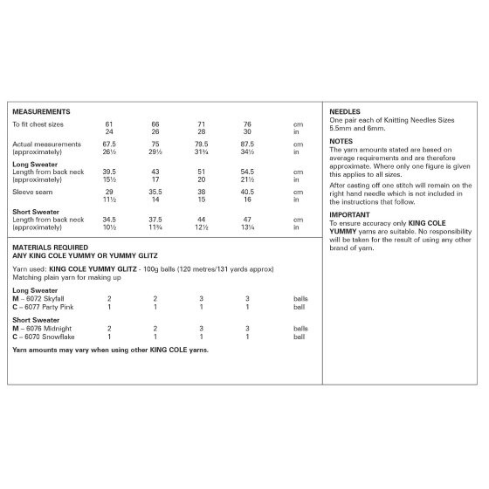 King Cole Pattern Girls Sweaters knitted in Yummy Glitz 6392
