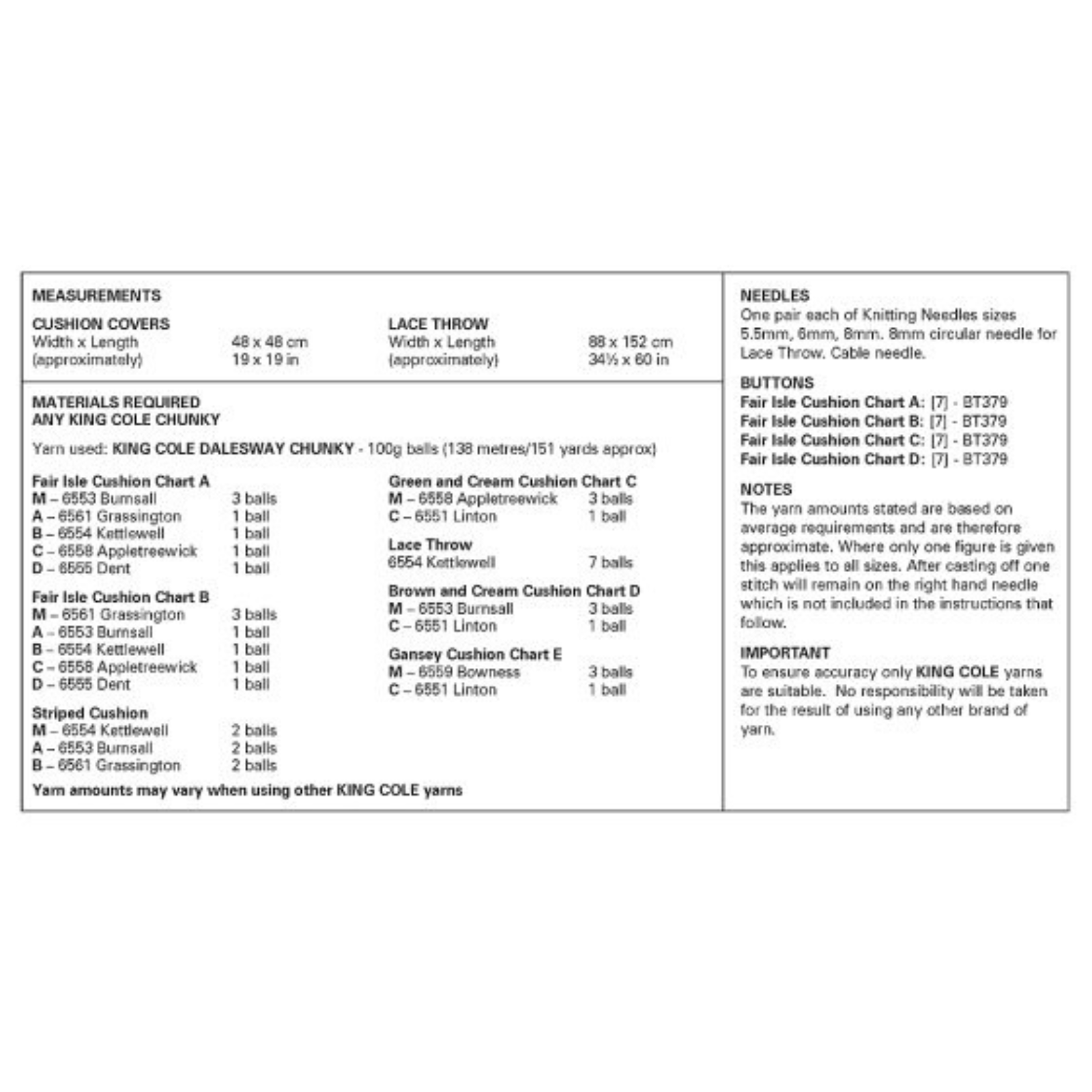 King Cole Pattern Homeware Accessories knitted in Dalesway Chunky 6415