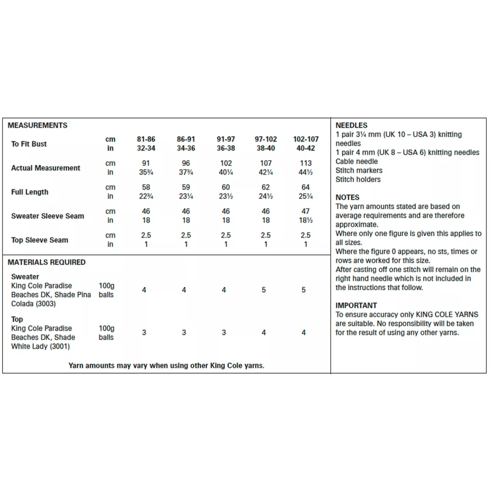 King Cole Pattern Ladies Sweater & Top Knitted in Paradise Beaches DK 5617