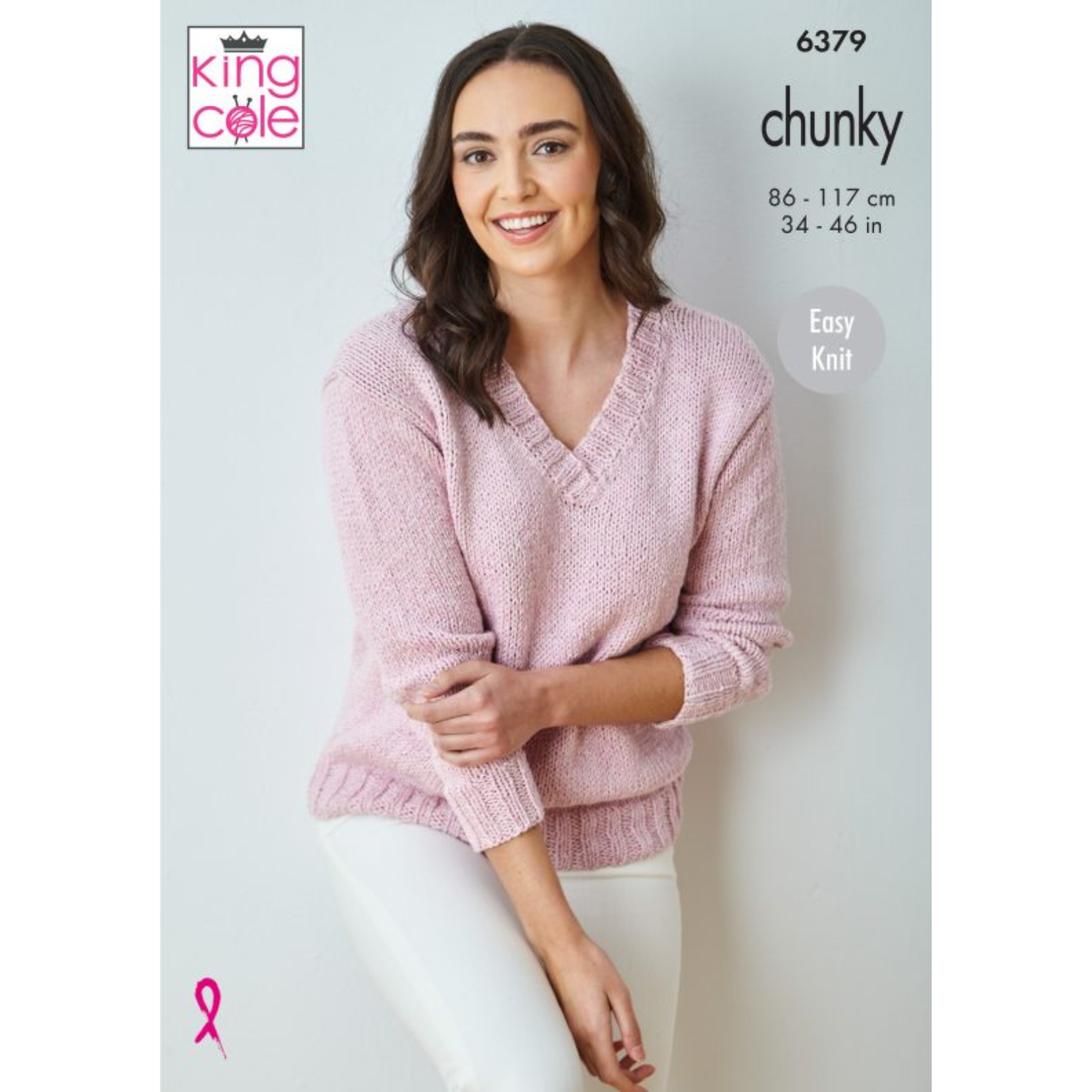 King Cole Pattern Ladies V Neck Sweater and Top knitted in Simply Denim Chunky 6379