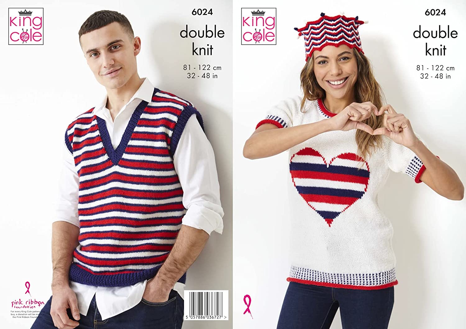 King Cole Pattern Sweater, Tank Top, & Crown Knitted in Merino Blend DK 6024