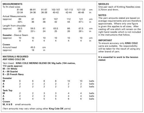 Pattern Knitting Sweater, Tank Top, & Crown Knitted in Merino Blend DK King's Coronation