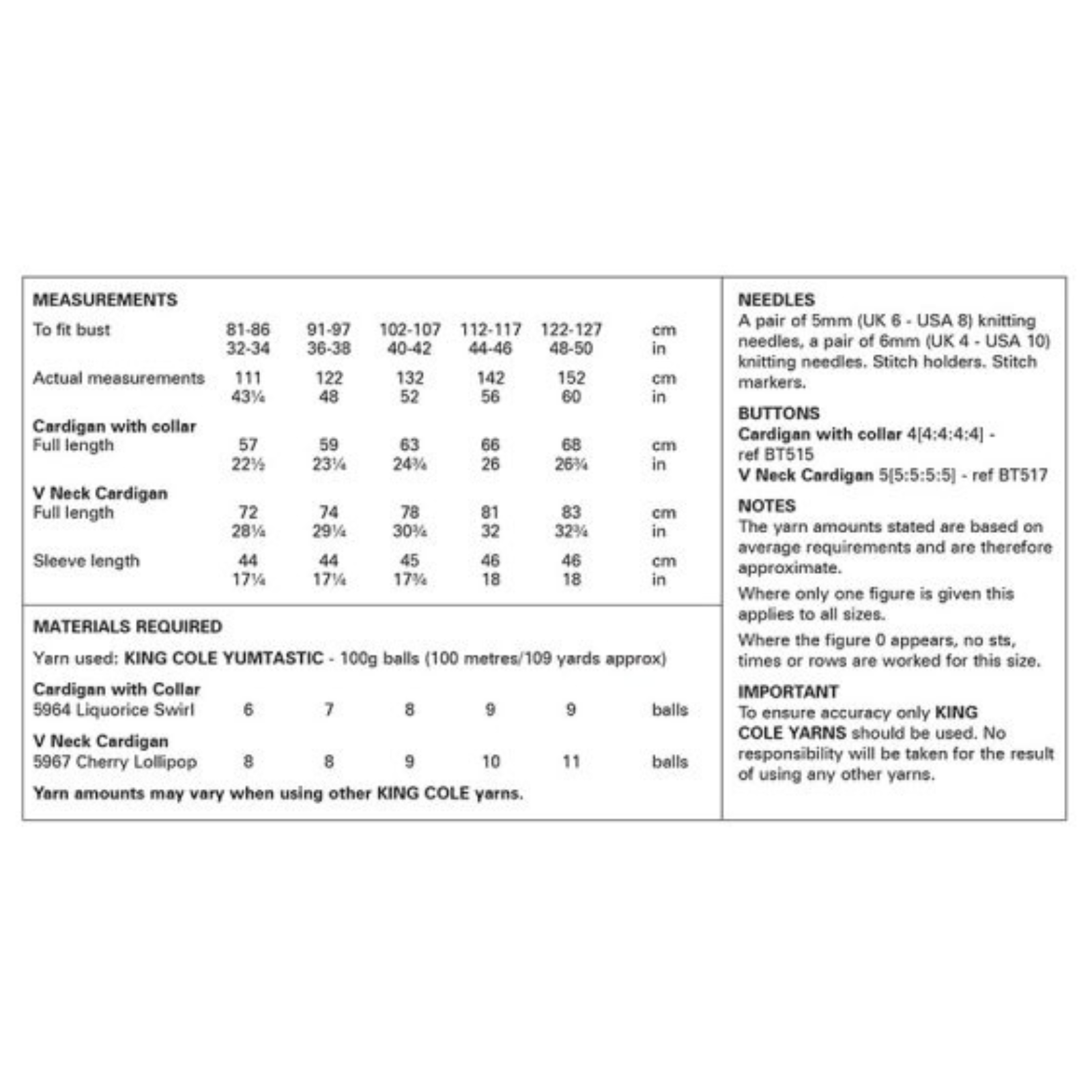 King Cole Pattern Women’s Cardigans knitted in Yumtastic 6254