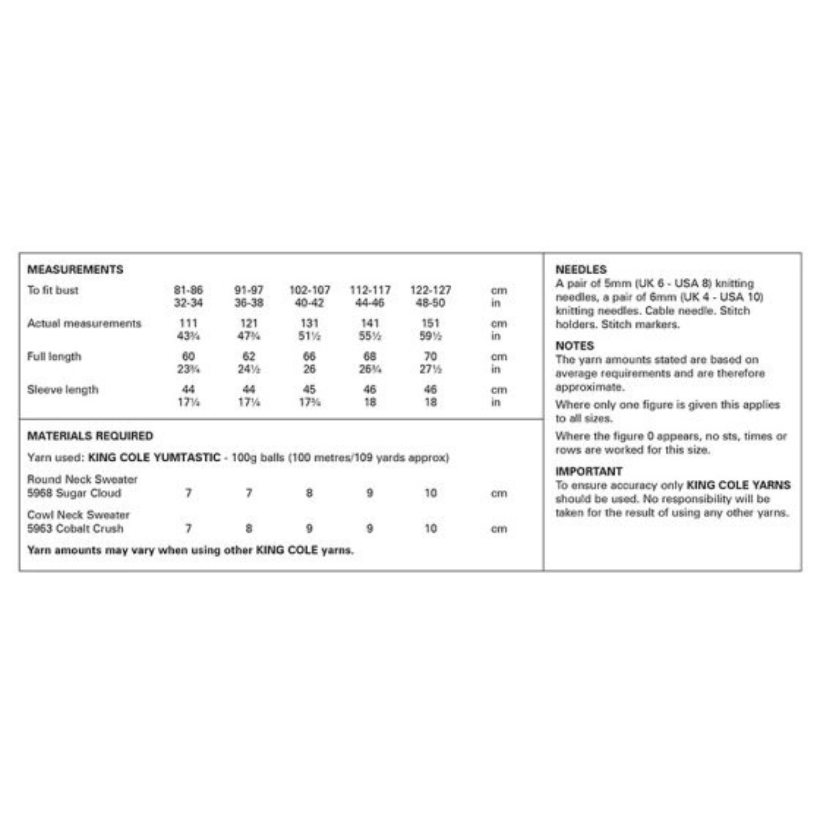 King Cole Pattern Women’s Sweaters knitted in Yumtastic 6256