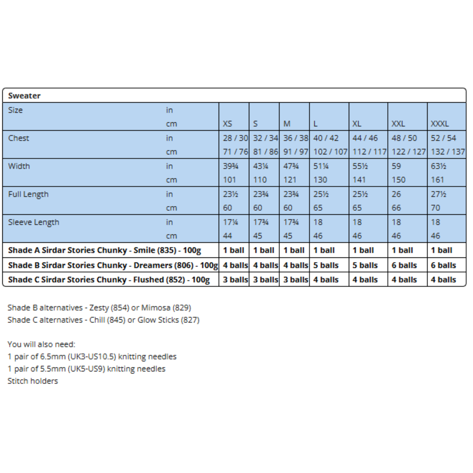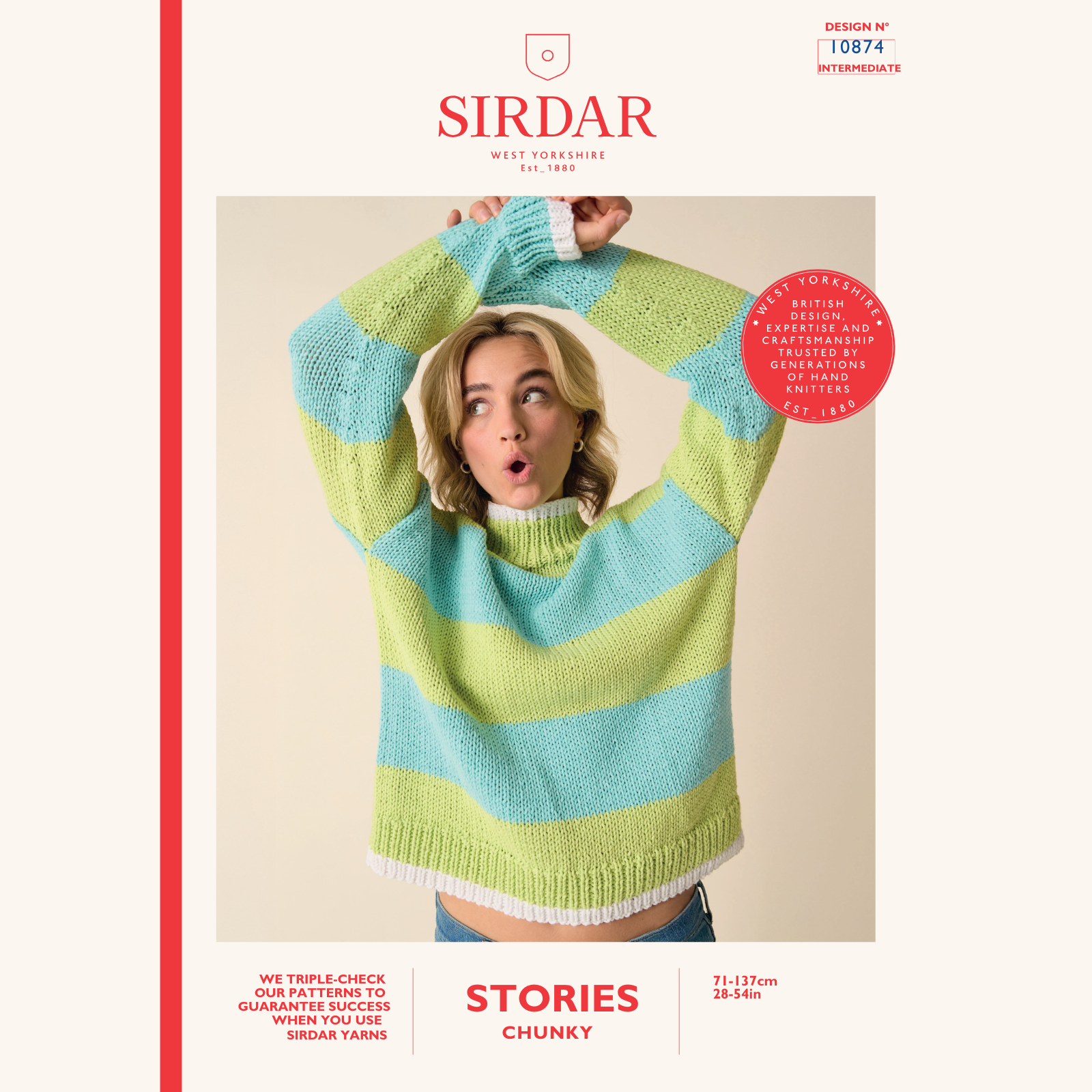 - This easy-knit pattern features bold colour-block stripes in fashionable Sirdar Stories Chunky, tipped with white to keep your look fresh