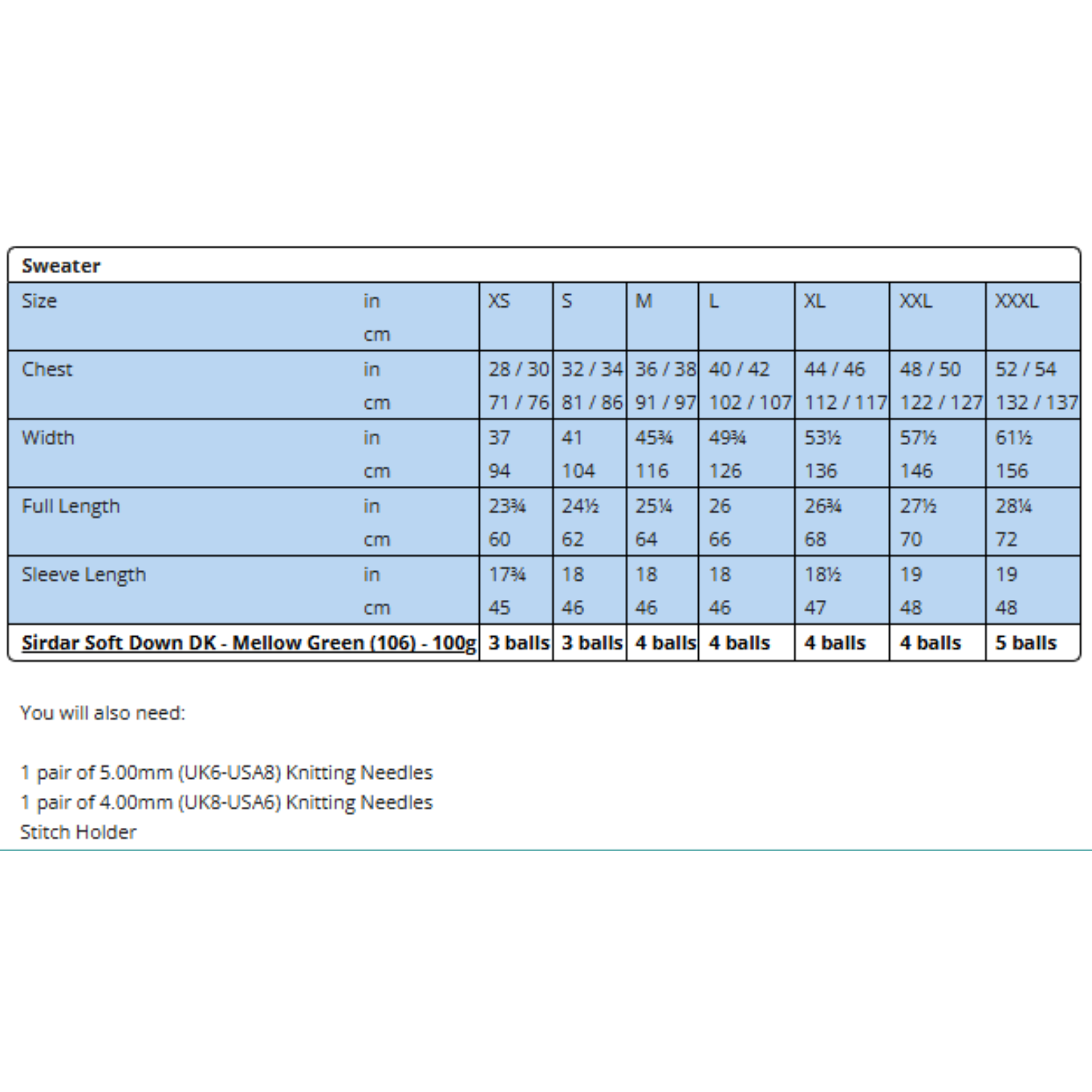- This soft sweater will look beautiful in any shade of gently brushed Sirdar Soft Down