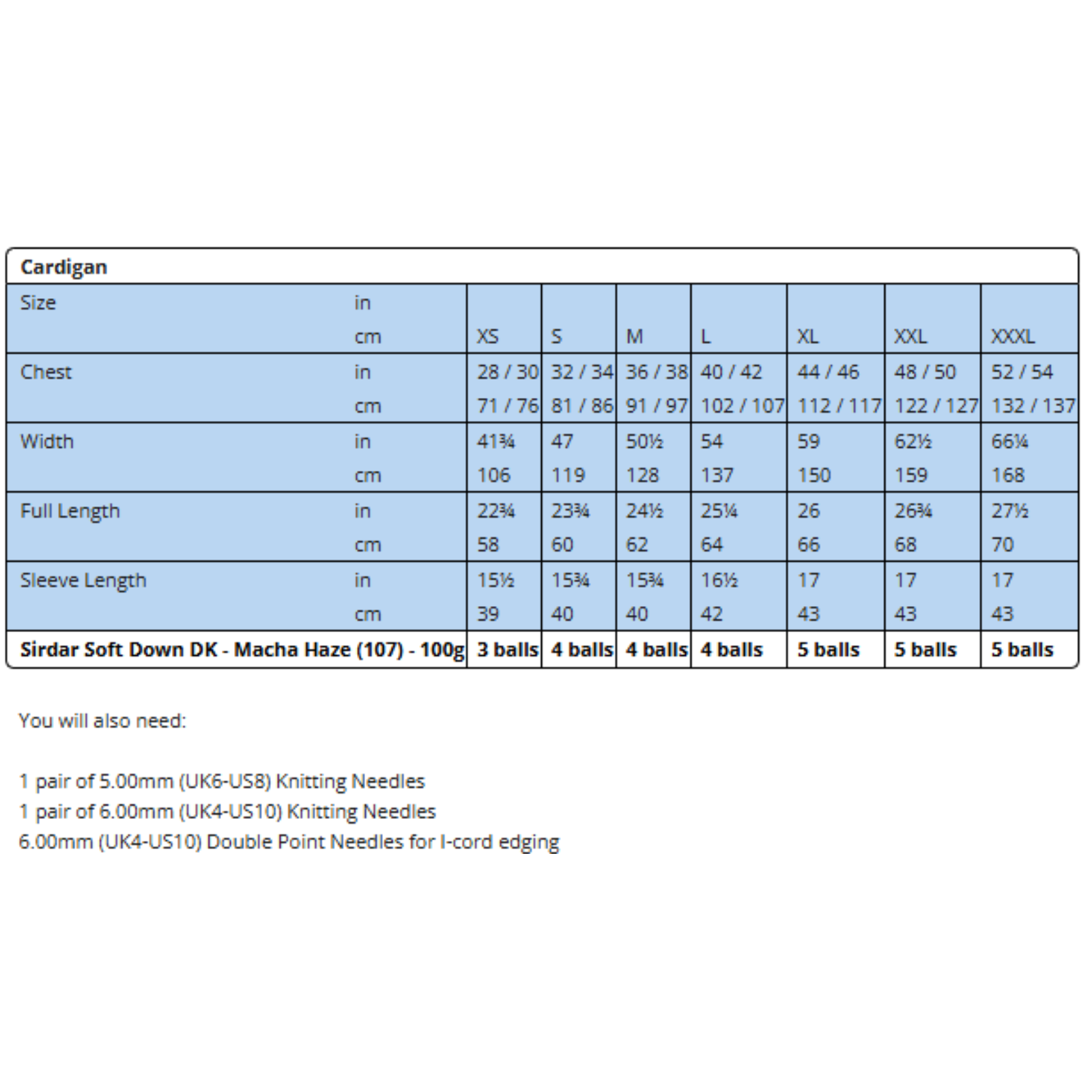 - You Will Also Need: 1 Pair of 5mm (UK6 – USA8) Knitting Needles, 1 Pair of 6mm (UK4 – USA10) Knitting Needles and 2 6mm (UK4 - USA10) Double Pointed Needles for I-Cord Edging