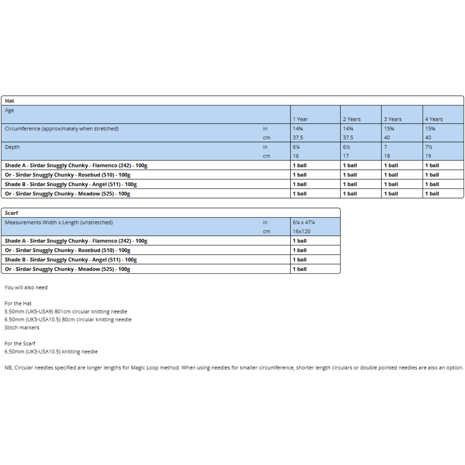 - Please see second image for suggested yarns, needle sizes and quantities required to make the garments