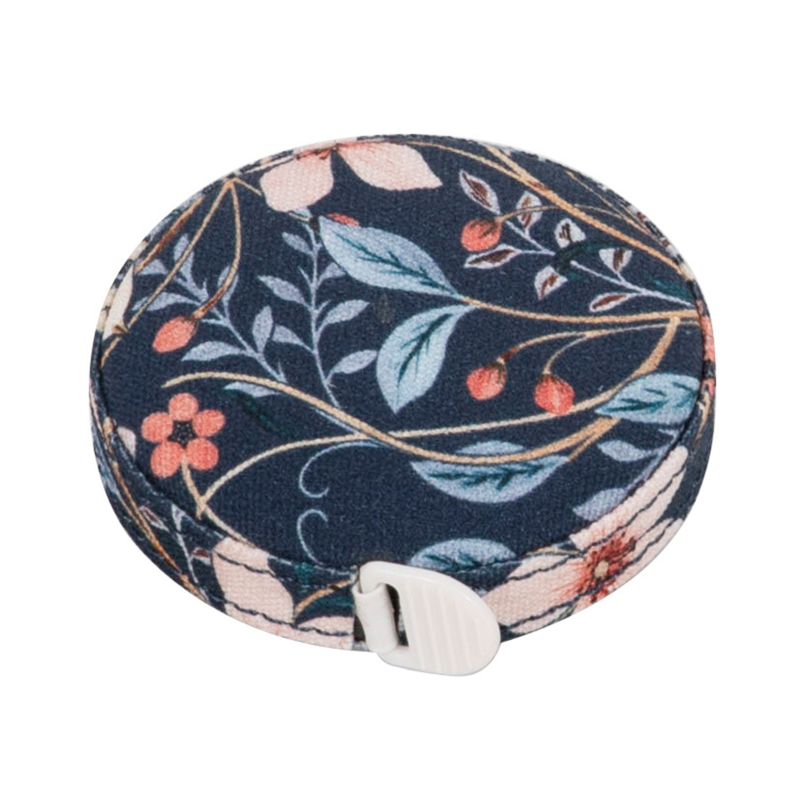 - Retractable tape measure, covered with cotton fabric in a classic, arts and crafts inspired bird print