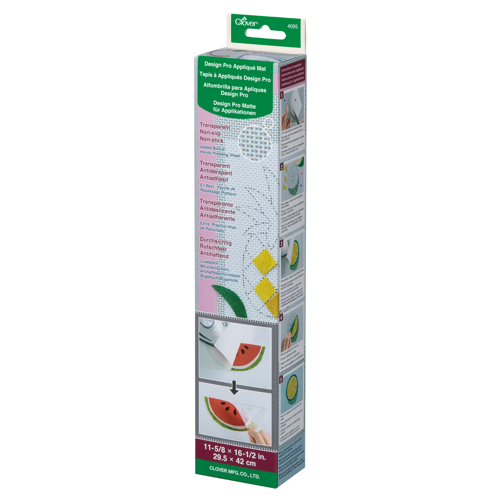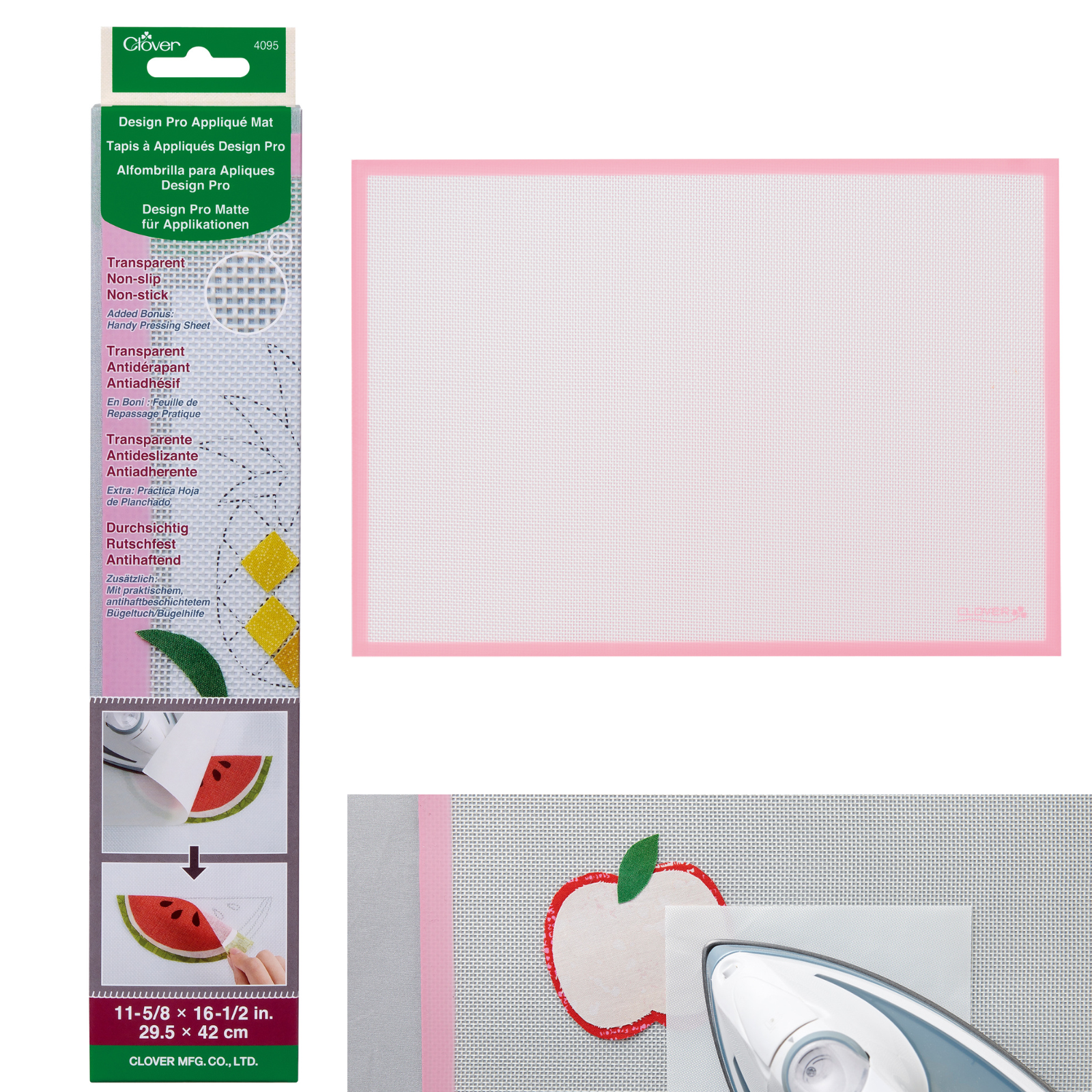 - Non-slip surface texture holds applique pieces in place.