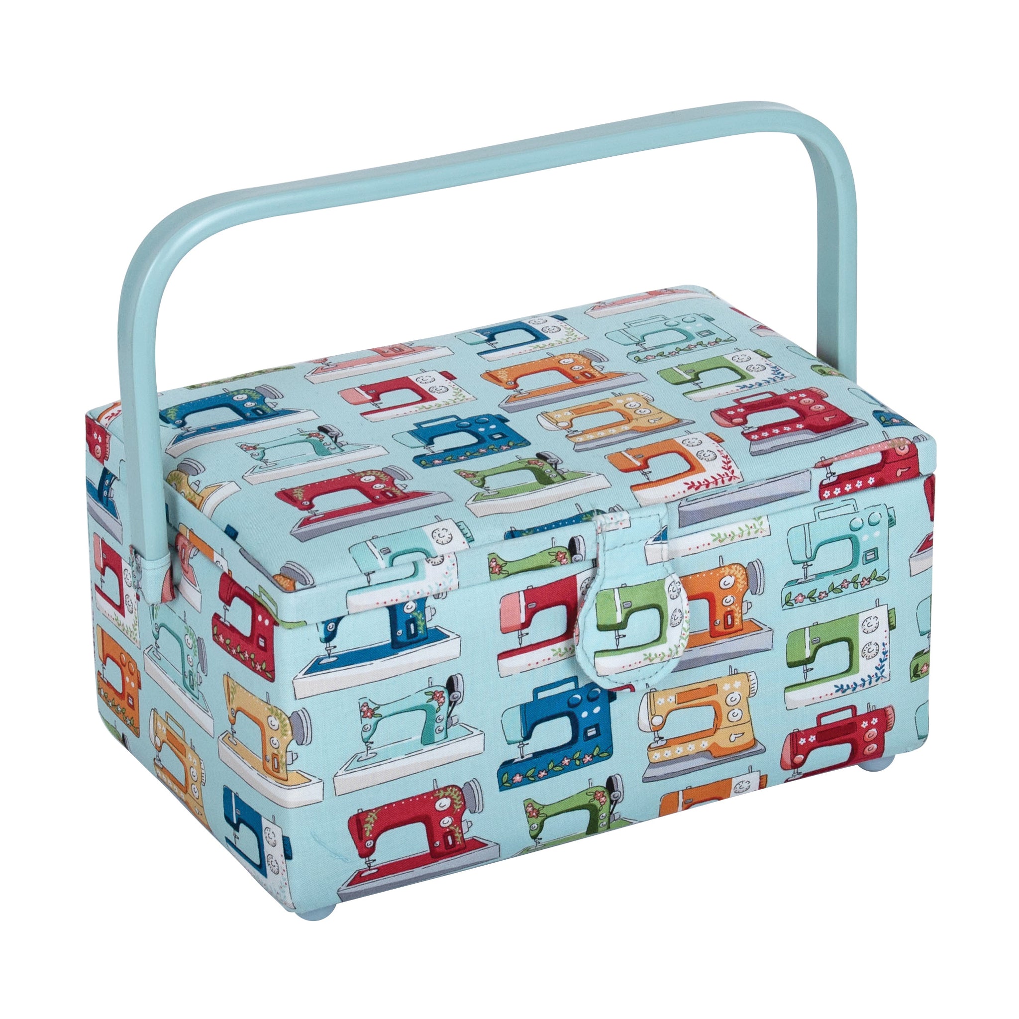 - Medium-sized sewing box made from 100% cotton fabric in a vintage Sewing Machine print