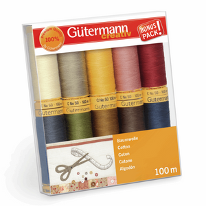 Gutermann Thread Set: Natural Cotton C No. 50 - 10 x 100m - Colour Assortment 3