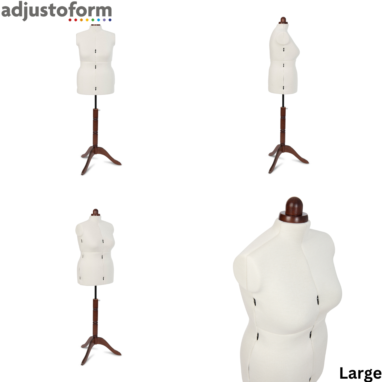 - Large size - Bust: 45 - 53in; waist: 38 - 46in; Hips: 47 - 55in; Back length: 16 - 18in; Max height: 6ft 3in; UK dress size: 18 - 24