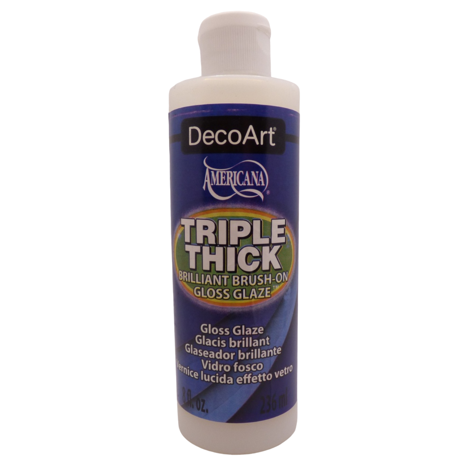 - Triple Thick Gloss Glaze is ideal for adding a glazed ceramic look to a variety of hard craft surfaces