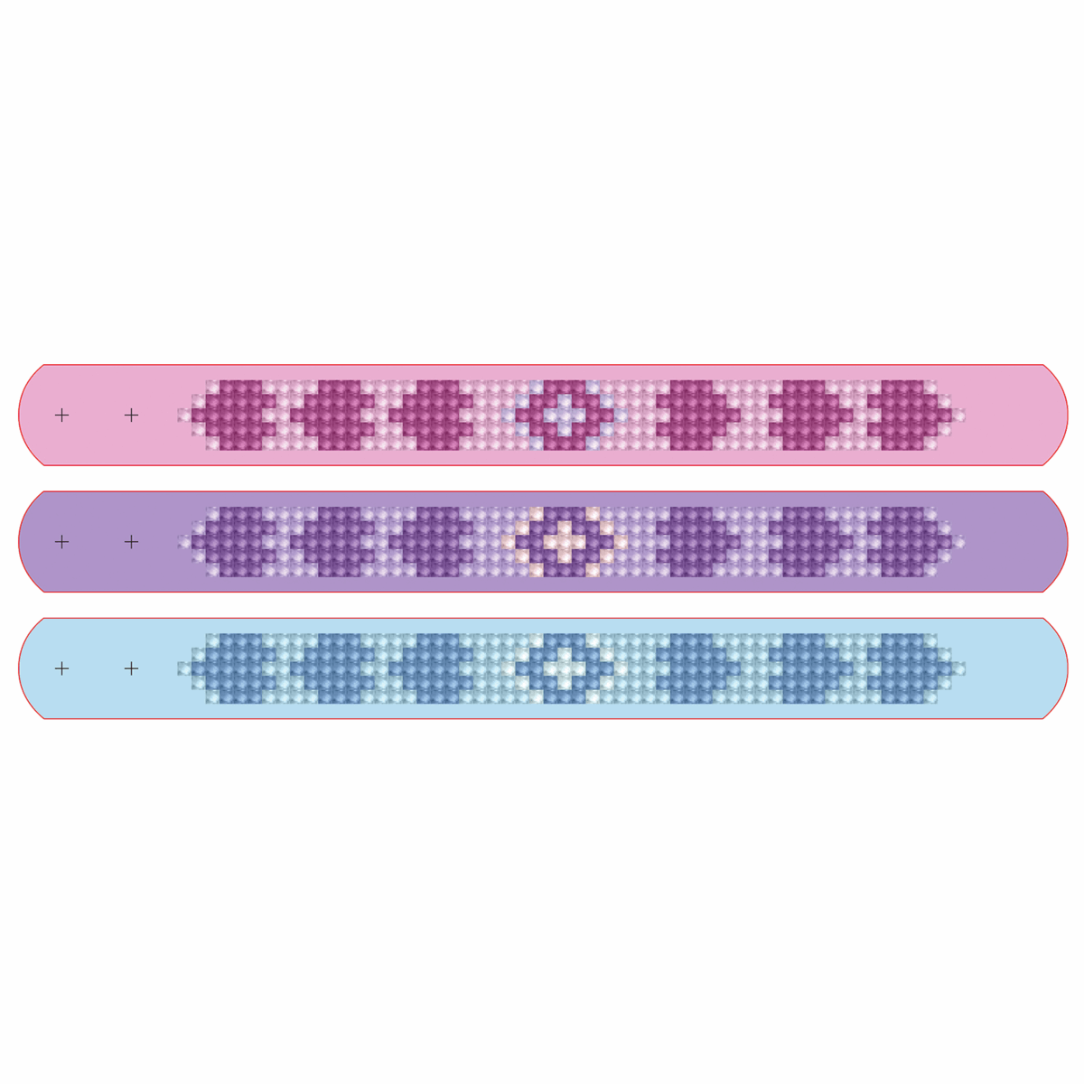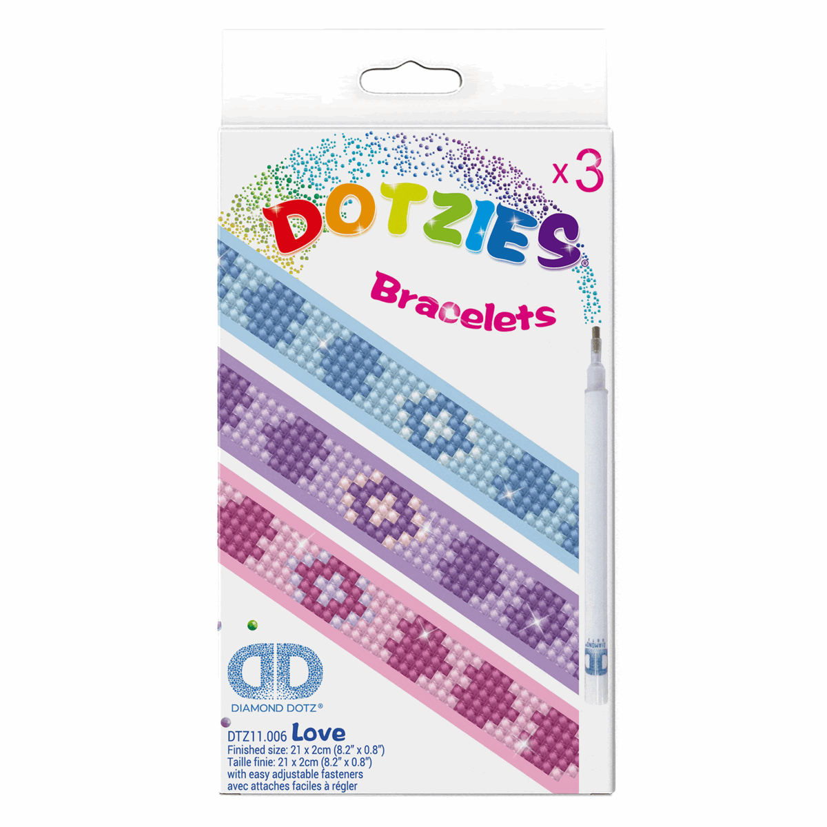- Kit includes: 3 sparkle fabric bracelets with fasteners, ready to decorate with Diamond Dotz, pre-sorted by shade,