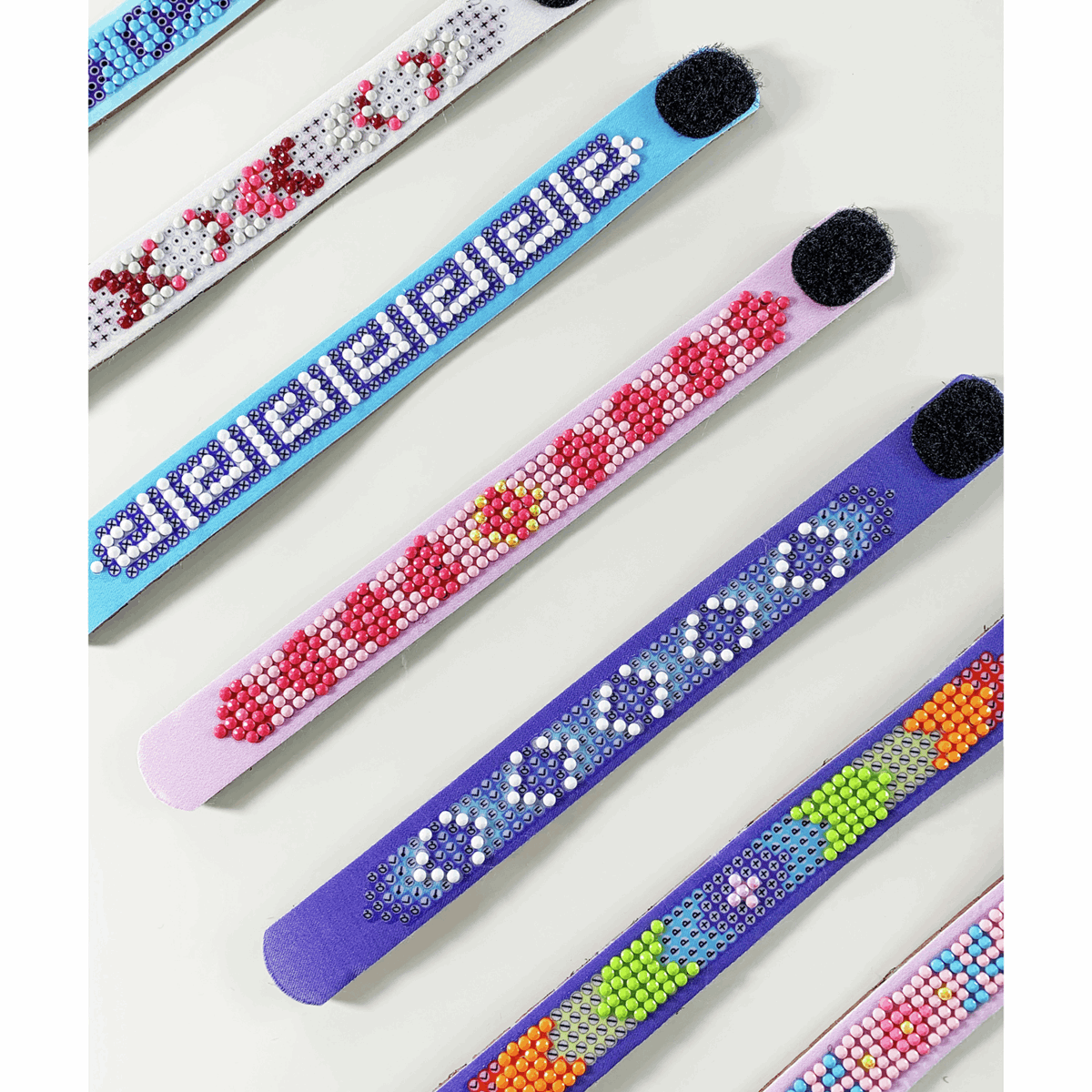 - Kit includes: 3 sparkle fabric bracelets with fasteners, ready to decorate with Diamond Dotz, pre-sorted by shade,