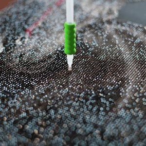 - Simply pick the Diamond Dotz up and place them on the specially designed colour printed fabric