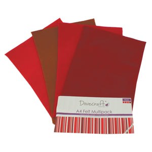- A4 felt with 8 sheets of assorted shades. 2 sheets of 4 colours. Composition 100% Polyester.