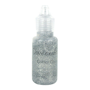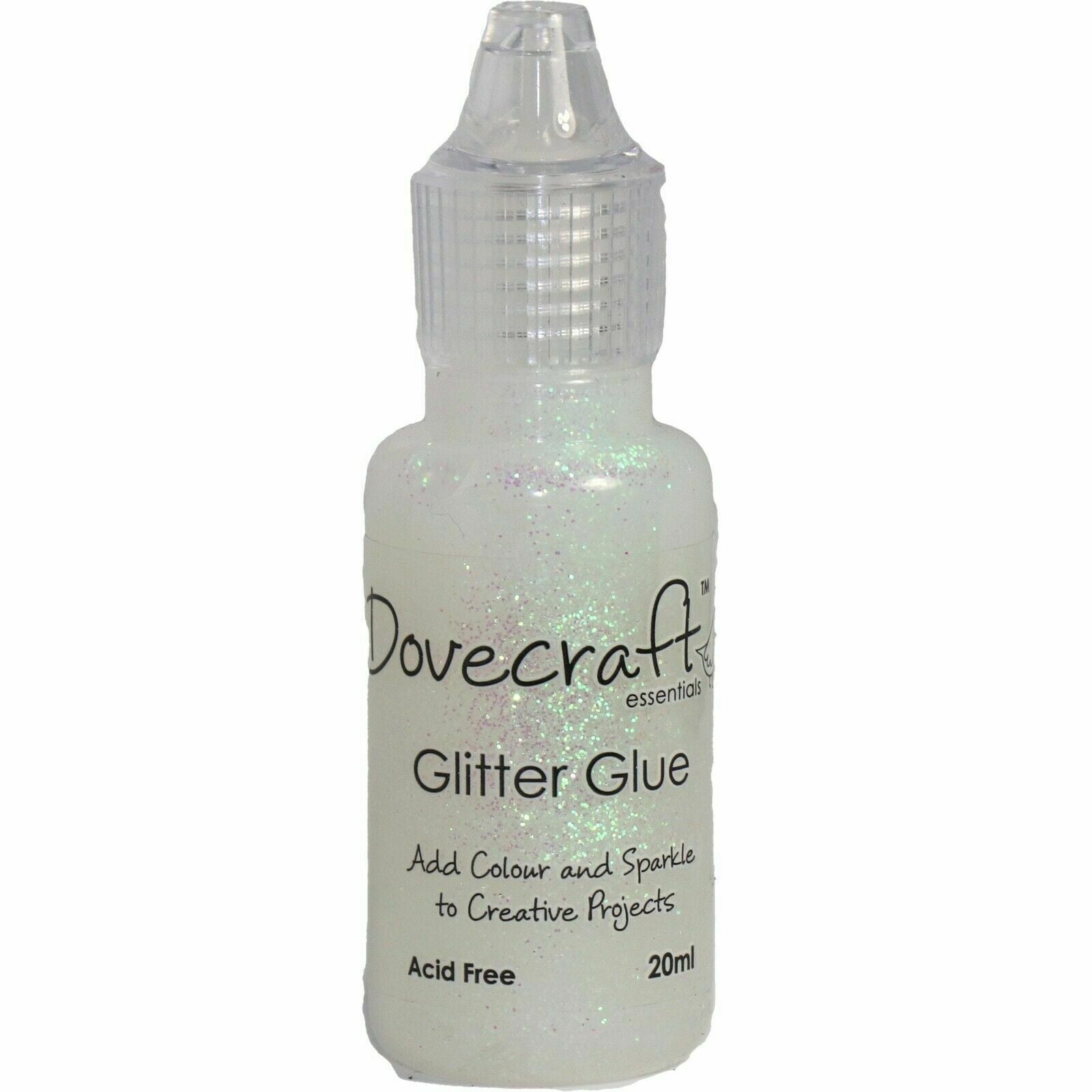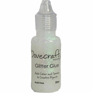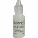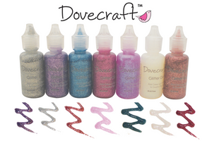- Dovecraft glitter glues come with a fine nozzle for precision application and are loaded with glitter for a dense colour and a bright shine